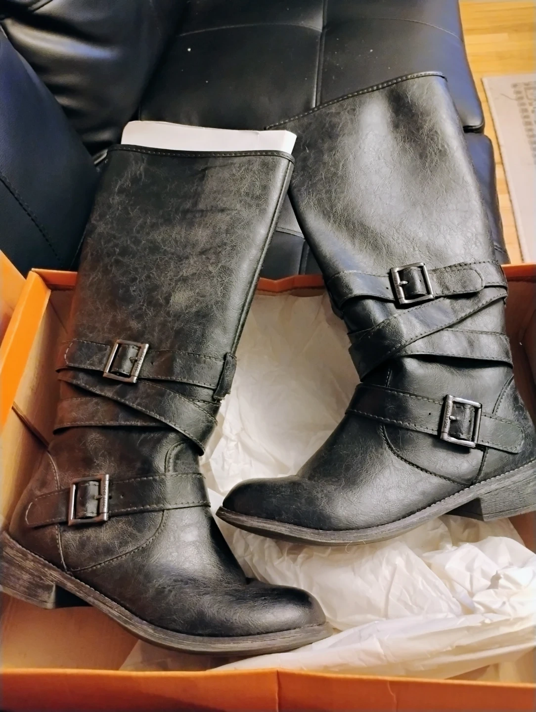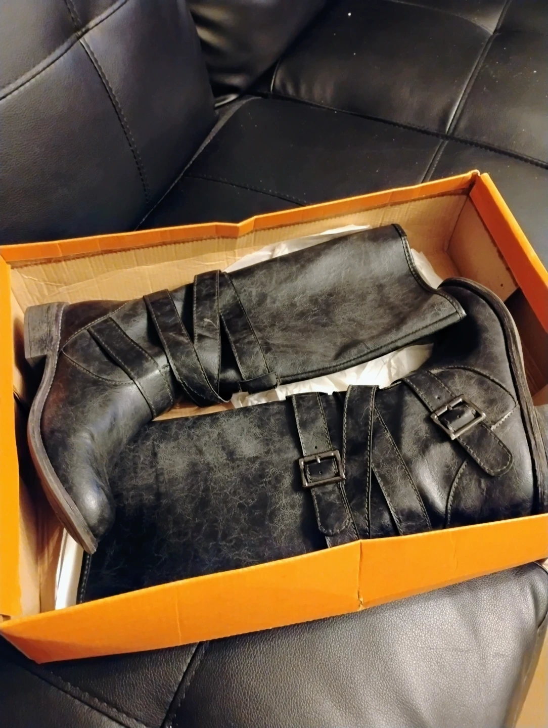 Rocket Dog black boots with gray marbled weathered look & buckle straps. Comes with the original box, pull on boots in unused condition. Pickup from smoke & pet free home in Maspeth Queens, blks from Long Island Expwy. Check out my other shoes, boots, sandals, sneakers & more, for bigger discount on multiple purchases.