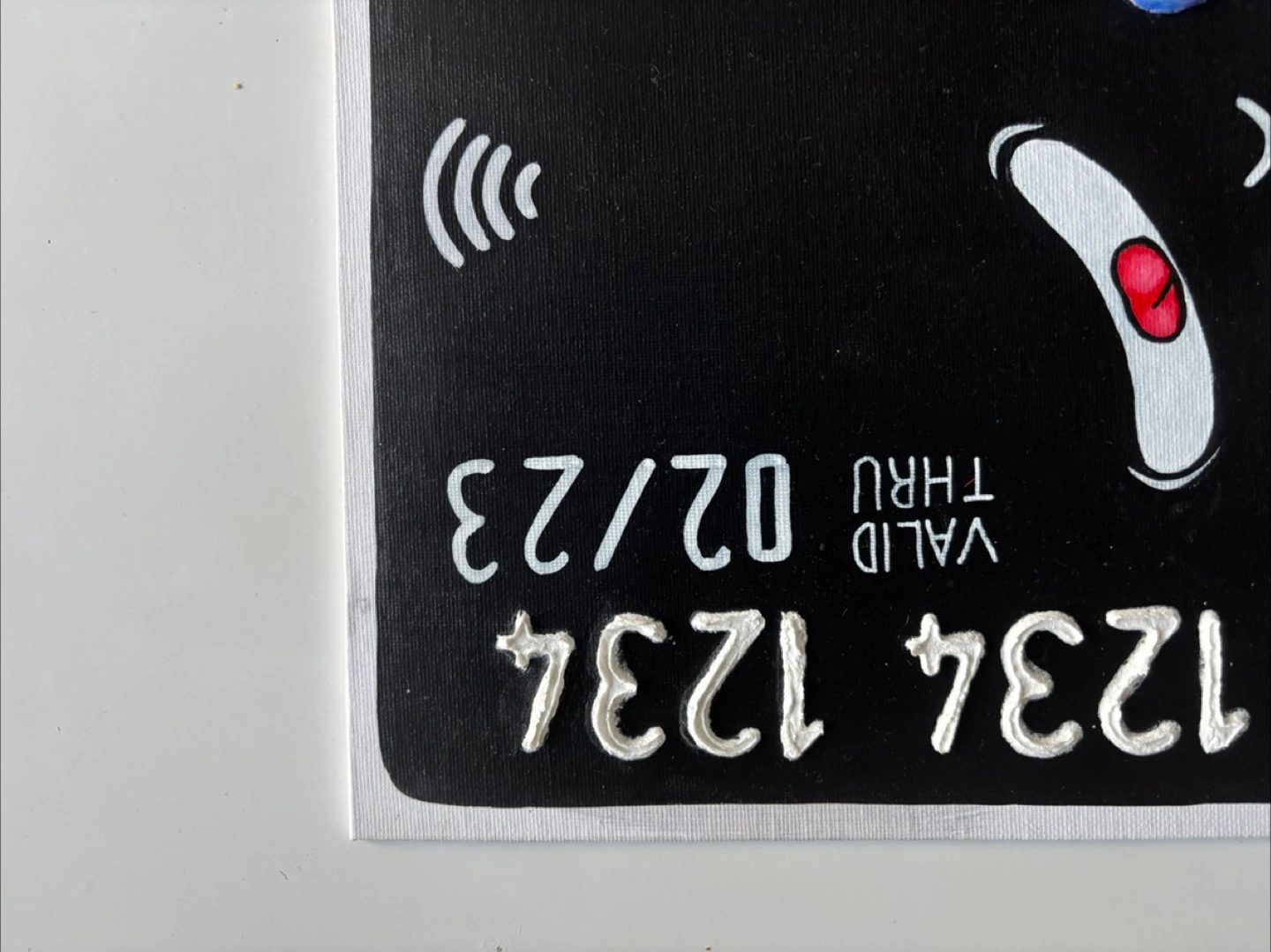 12”x16” Acrylic Paint and Fibre Paste (raised numbers and eyes) on Canvas board