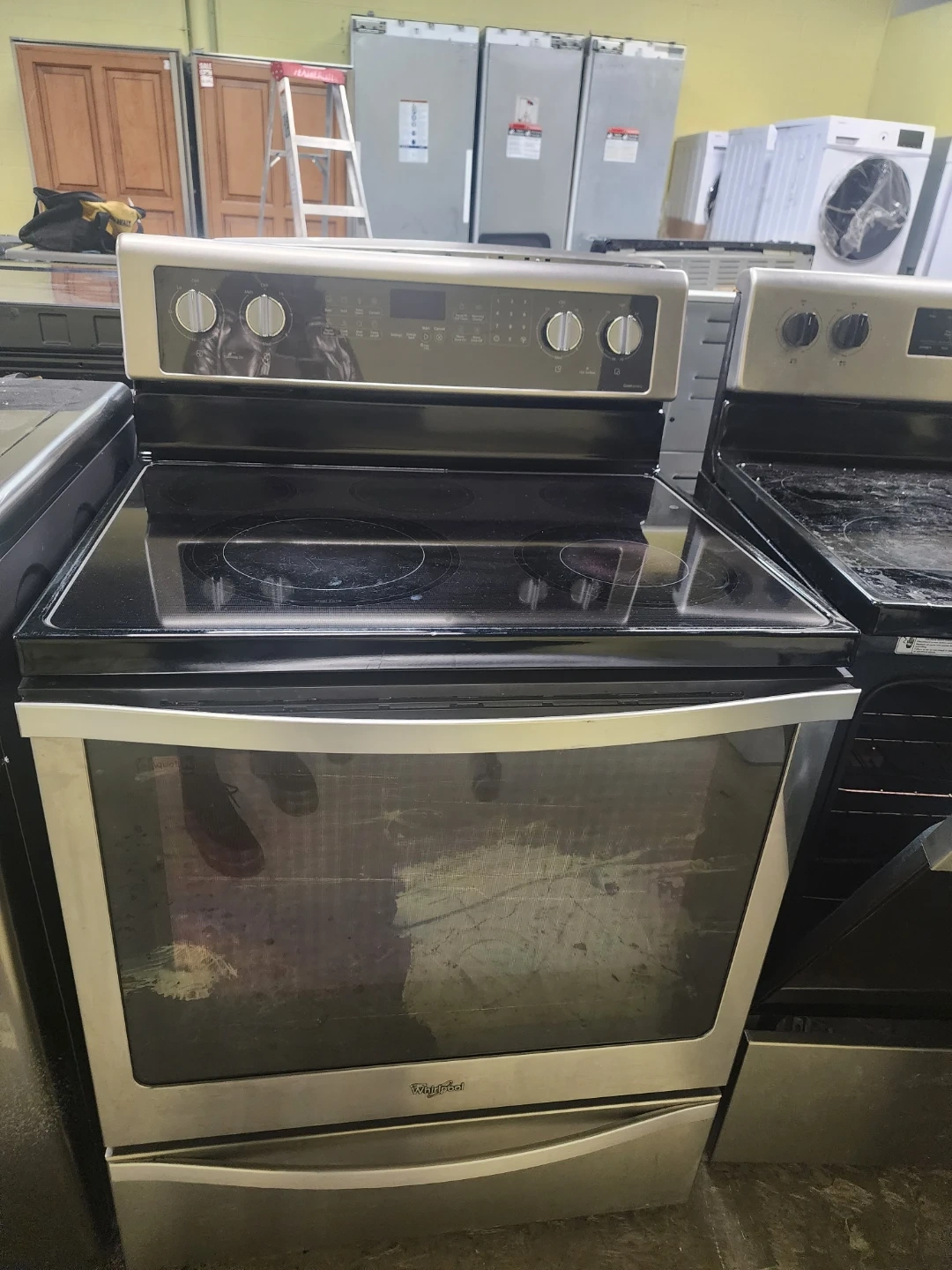 Selling a Whirlpool electric range in stainless steel. It's a great addition to any kitchen! The range has a smooth top and a self-cleaning oven. It's in good working condition and ready for its new home