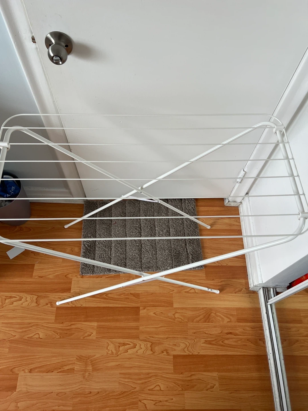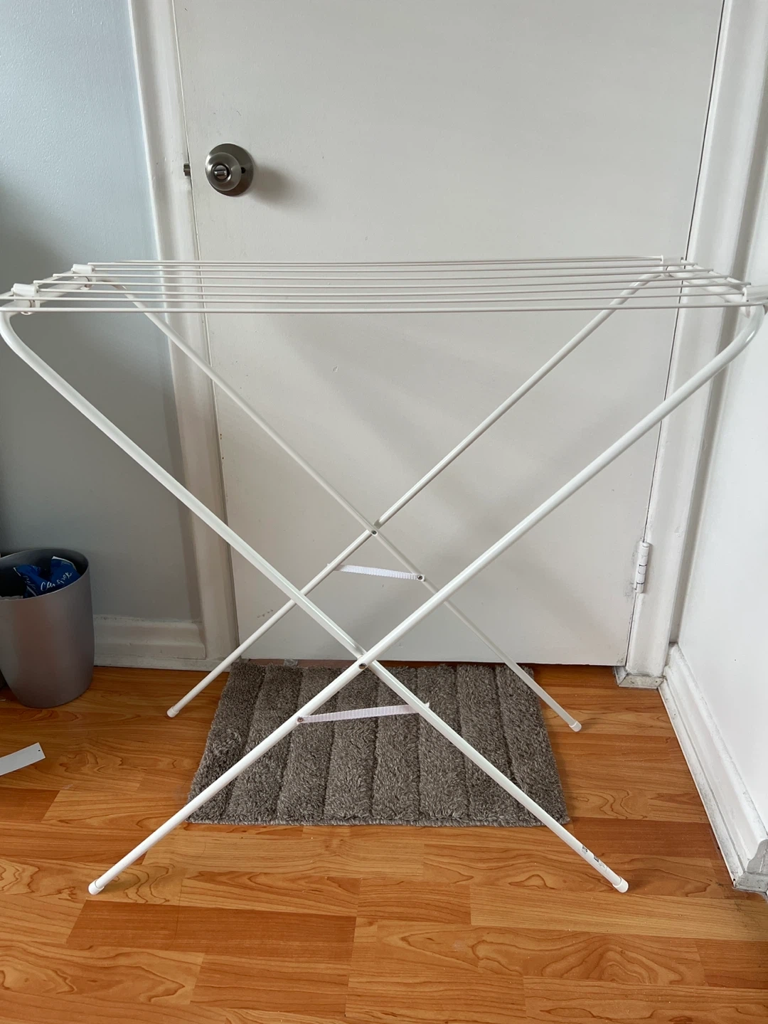 Here's a handy clothes drying rack! It's perfect for saving energy and drying your clothes indoors, especially during the colder months. It's in great shape and ready to use right away