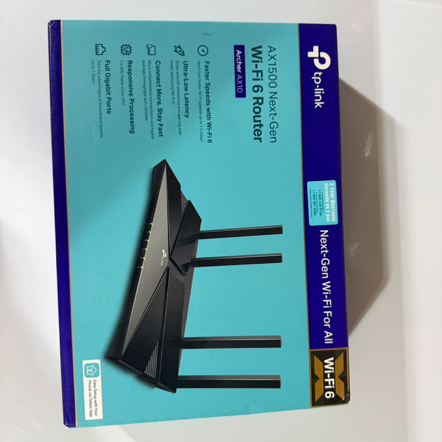 This is a TP-Link AX1500 Next-Gen Wi-Fi 6 Router, model Archer AX10. It offers faster speeds with Wi-Fi 6 and ultra-low latency. It comes with responsive processing and full Gigabit ports.