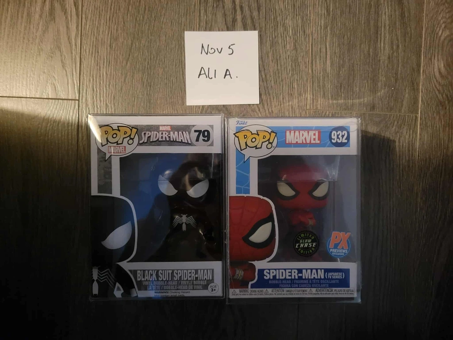Includes Funko Pop! Marvel Spider-Man 79 (Black Suit Spider-Man) and Spider-Man 932 (Japanese TV Series). Spider-Man 932 is a Limited Glow Chase Edition and PX Previews Exclusive.