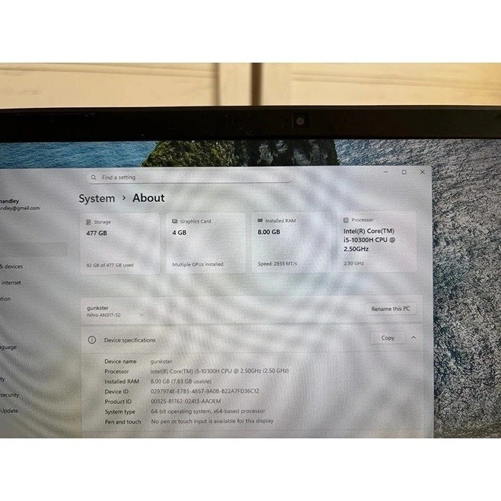 Acer Nitro 5 AN517-52 GAMING LAPTOP, 17.3" i5-10300H @ 2.5GHz (8GB RAM, 512GB SSD) GeForce GTX 1650, Backlit Keys, Windows 11. NOTE: there's a minor crack on the left center side and the power button key cap is missing, but the key still works! Large 17.3-inch HD display, 512GB SSD, 8GB DDR4 RAM, Backlit Keys, Windows 11, NVIDIA GeForce GTX 1650 Graphics, VR Gaming Compatible. Runs modern games like Call of Duty, League of Legends, Minecraft, GTA, Roblox, Fortnite, Genshin Impact, World of Warcraft, Dota 2, Fall Guys, Among Us, Overwatch, Rocket League, Steam Games, Destiny 2, and The Sims. Processor: i5-10300H @ 2.5GHz, RAM: 8GB, Storage: 512GB SSD, Screen: 17.3", GPU: GeForce GTX 1650.
