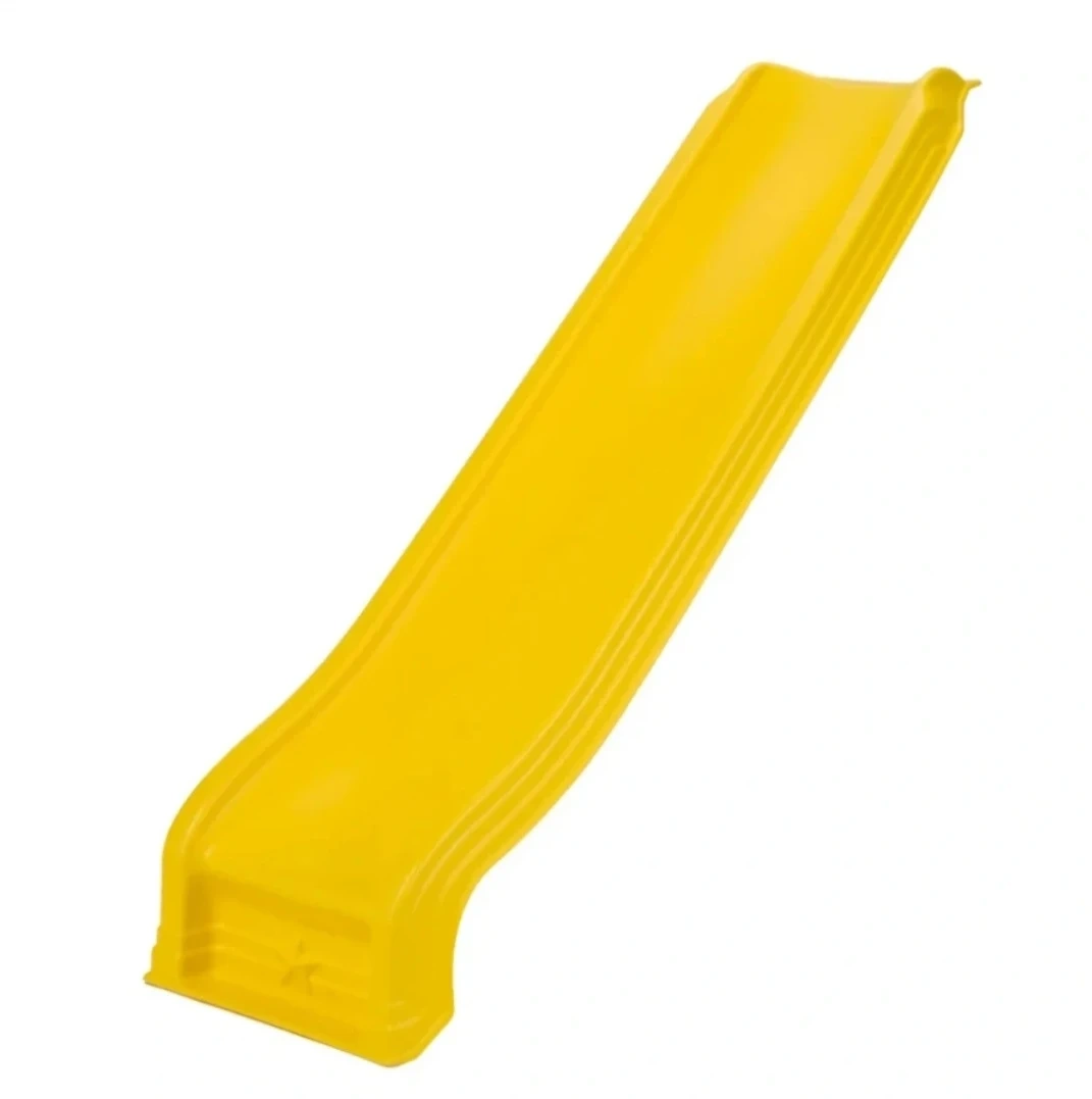 A bright yellow plastic slide for a playground set. It's designed for outdoor use and attaches to a swing set or play structure. This slide provides a fun way for kids to play outside!