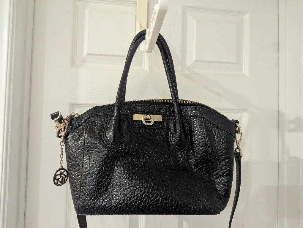 293A stylish black leather satchel from DKNY! It's in great condition and ready for a new home. Perfect for everyday use or a night out Pickup: Around Warden & Steeles ⭐Cash Only* ⭐ Responding to serious inquiries only ⭐ Price is firm.
