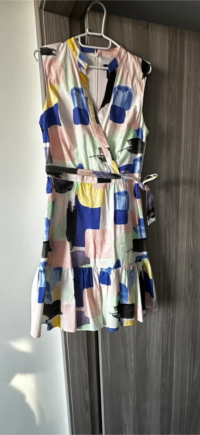 42Selling a DKNY dress in size 6. It features a vibrant and colourful pattern. The shell is made of 97% cotton and 3% spandex, while the lining is 100% polyester. It's in great condition and ready for a new home