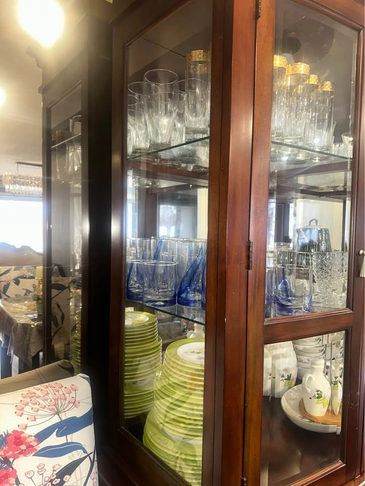 • Glass doors perfect for showcasing dishes, crystal, or decor