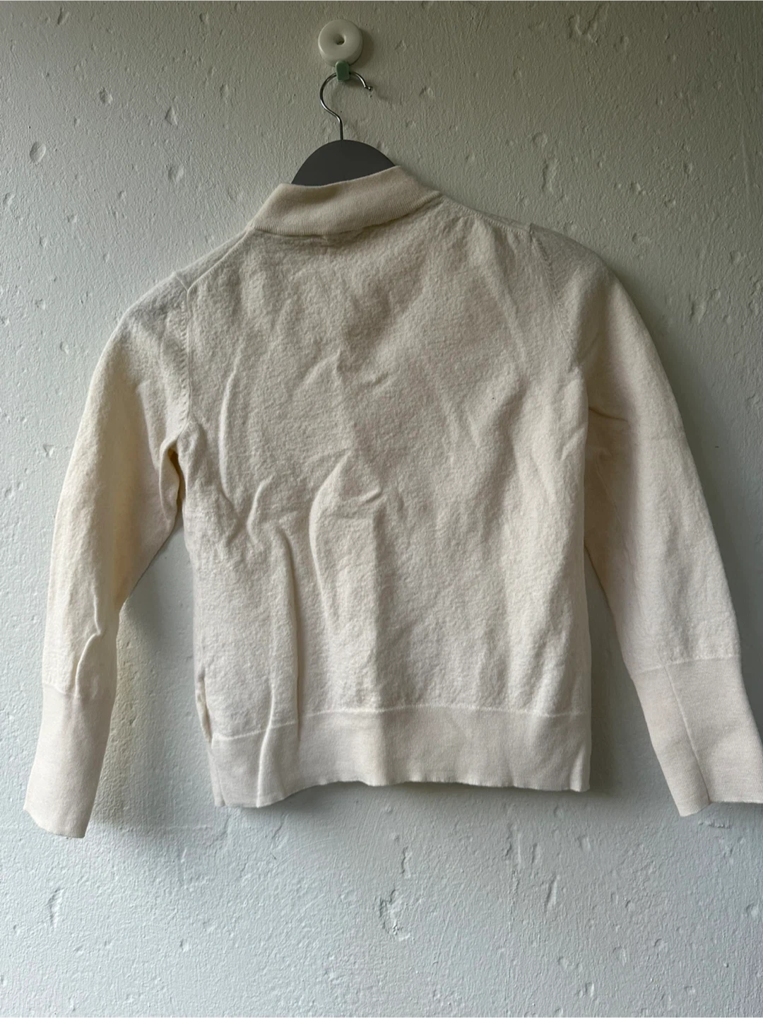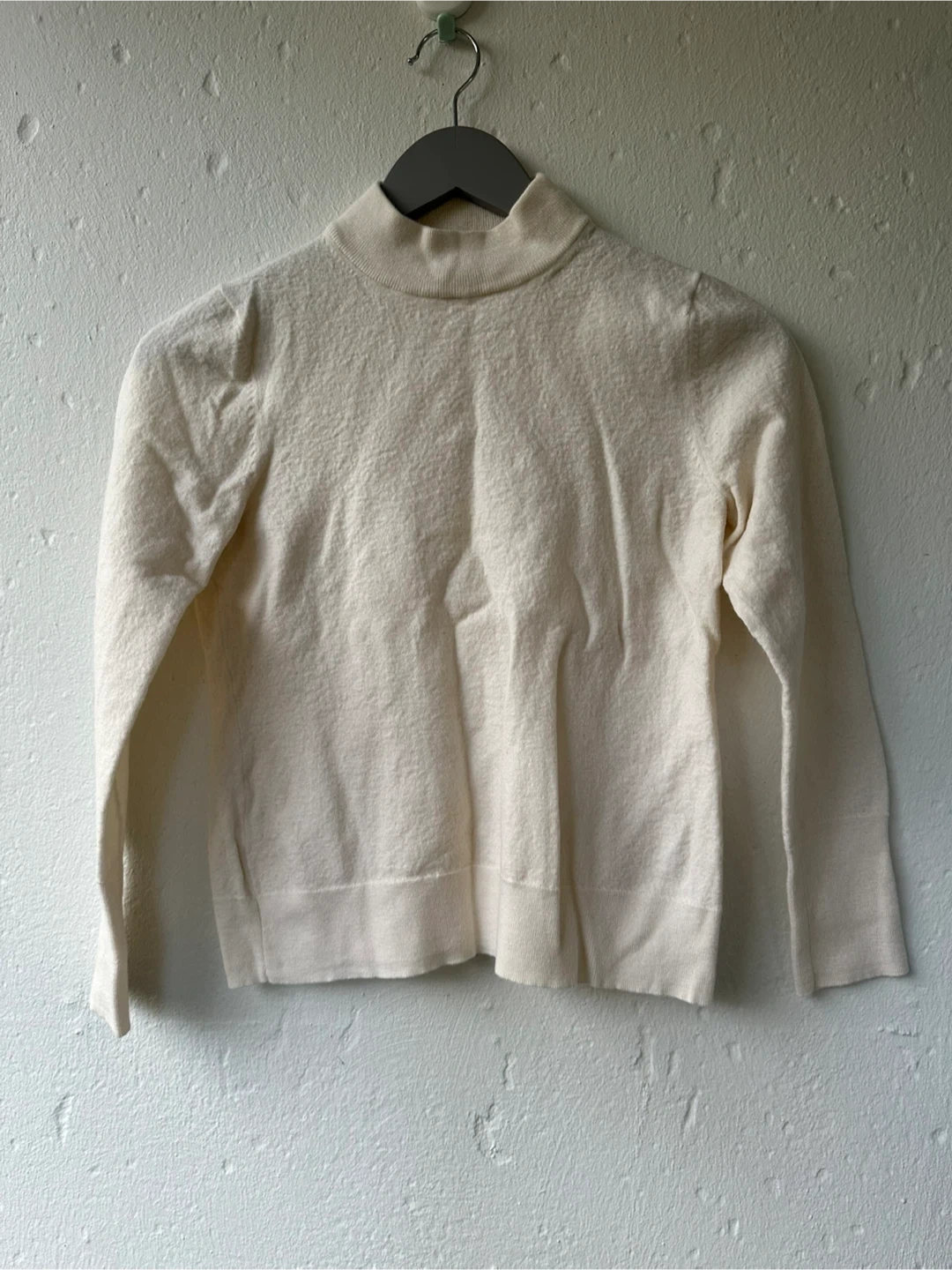 Cream knit sweater from The Fold London. Made with 80% wool, 17% polyamide, and 3% elastane. Size medium.