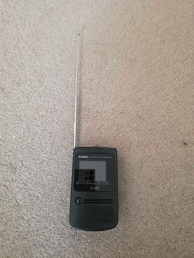 Buy & SellCasio TV-470 Pocket Color TVCasio TV-470 Pocket Color TV$40Rare handheld analog color TV with a 2.2" LCD screen. Great cosmetic condition; powers on. Requires a digital converter for modern signals.WHERE TO MEETCheck LocationView MapSELLERverifiedGinaForest Grove1083 reviews0 chats·0 favorites·3 viewsSEND CHAT TO SELLERHi Gina! I’m interested in your listing.Hi Gina! I’m interested in your listing.Get the Karrot app to chatSign In to chat