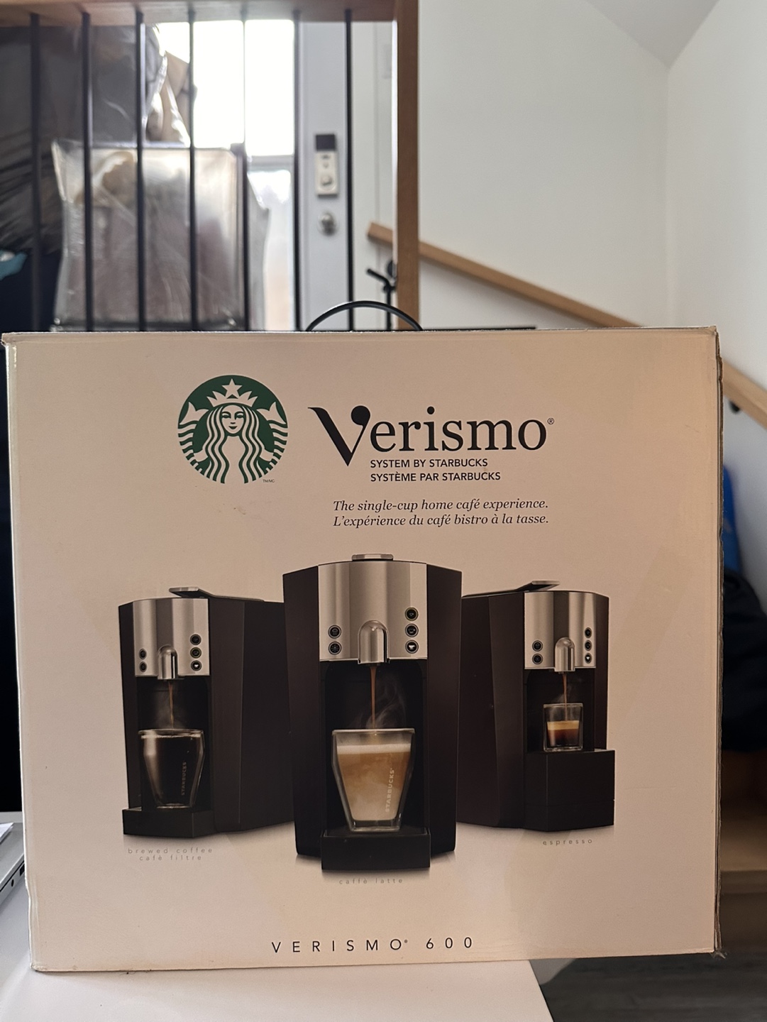 Buy & SellVerismo 600 Starbucks Coffee MachineVerismo 600 Starbucks Coffee MachineFreeVerismo 600 single-cup coffee machine. Boxed. With a reusable iron podConditionGoodBrandStarbucksWHERE TO MEETCheck LocationView MapSELLERVanessaRoncesvalles392 reviews3 chats·1 favorites·74 viewsSEND CHAT TO SELLERHi Vanessa! I’m interested in your listing.Hi Vanessa! I’m interested in your listing.Get the Karrot app to chatSign In to chat