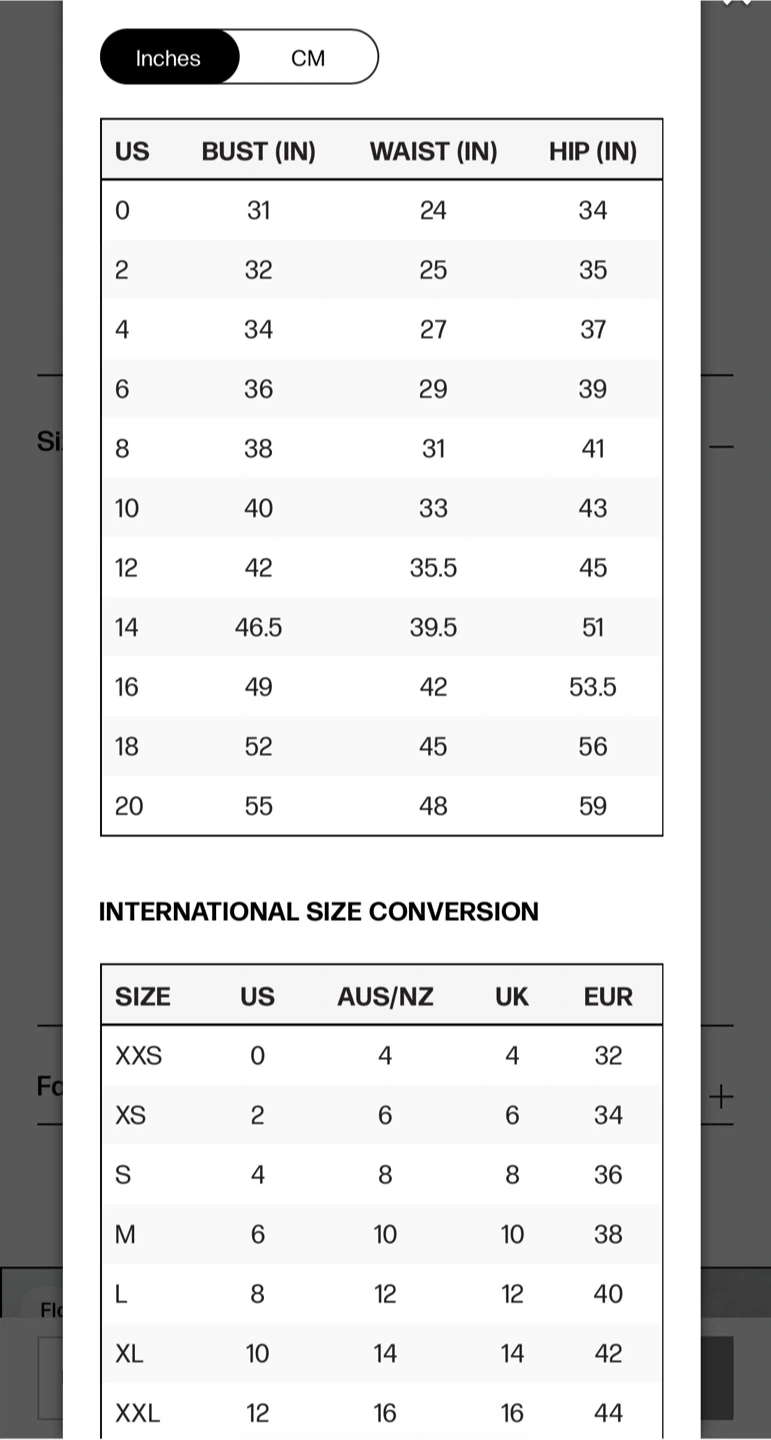 Size guide included for reference.