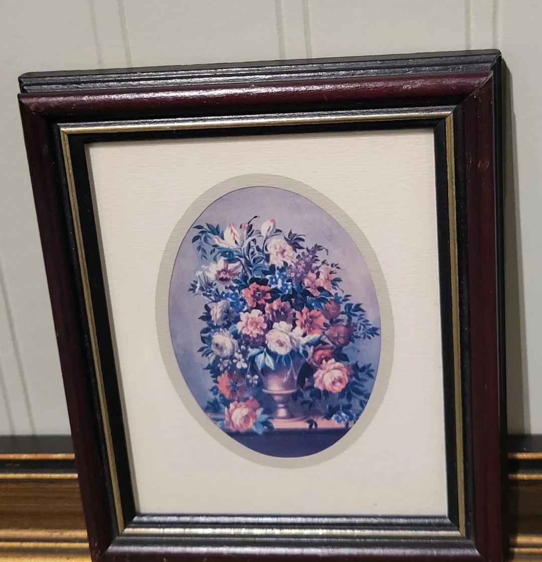 This is a framed floral print. It has a beautiful and classic design that would complement any room. The print is in good condition, with a well-maintained frame, adding a touch of vintage charm to your home decor.
