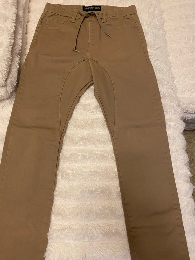 These Zoo York XS jogger pants are perfect for your little one! Being sold in used condition, they feature a comfortable elastic waistband with a drawstring, making them easy to wear and adjust. The neutral colour ensures they can be paired with a variety of tops. The durable material is perfect for everyday wear. Here are some additional details: