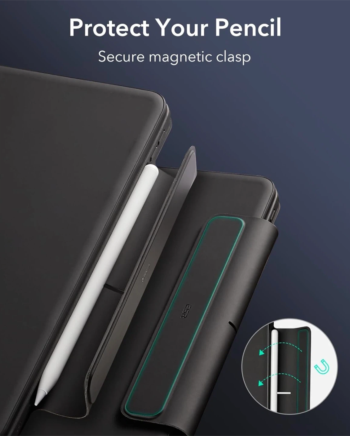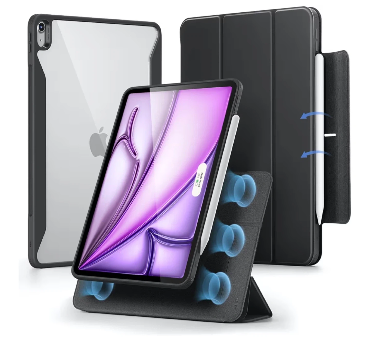 ESR for iPad Air 13 Inch Case M4/M3/M2 (2026/2025/2024) with Pencil Holder, Removable Magnetic Cover, Vertical Stand, Fully Supports Pencil Pro and Pencil(USB-C), Rebound 360 Series, Black