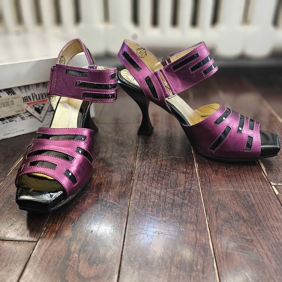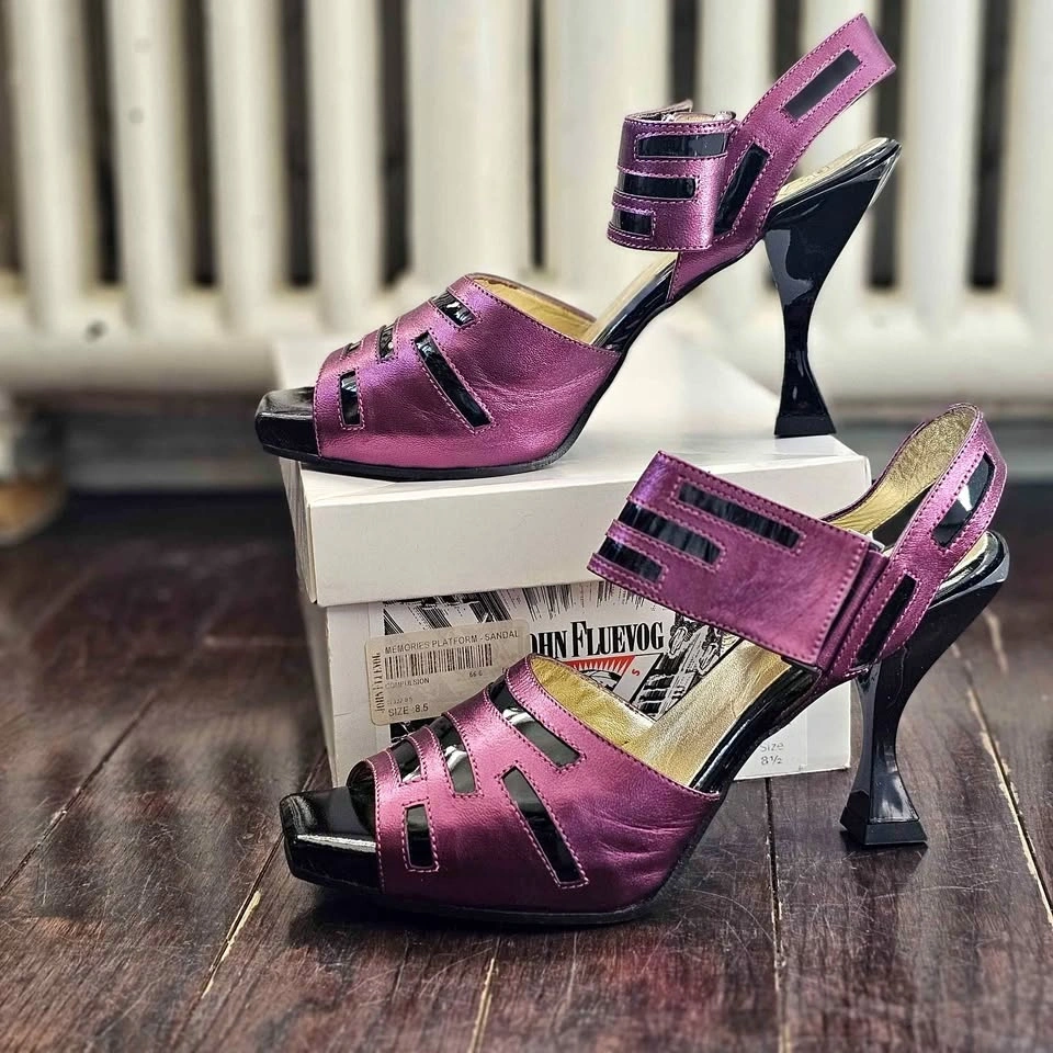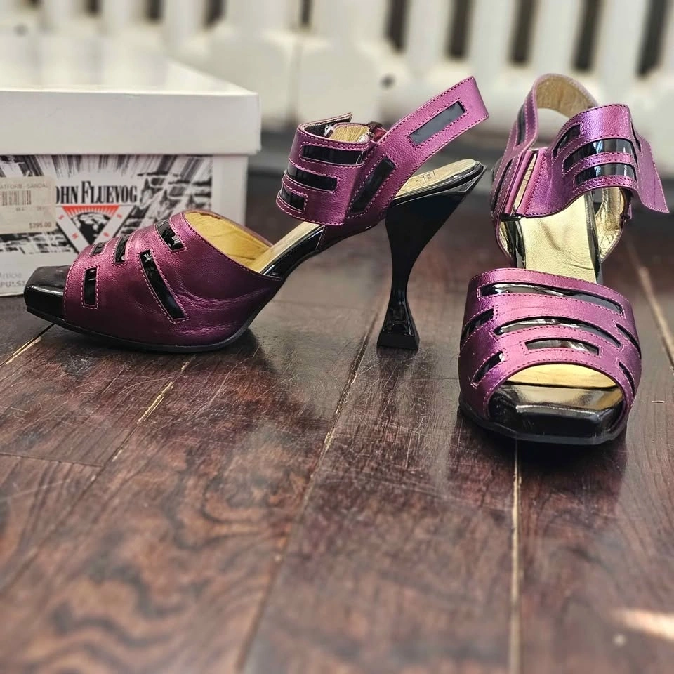 8.5 new in box Fluevog Compulsion Memories Purple Black Heels