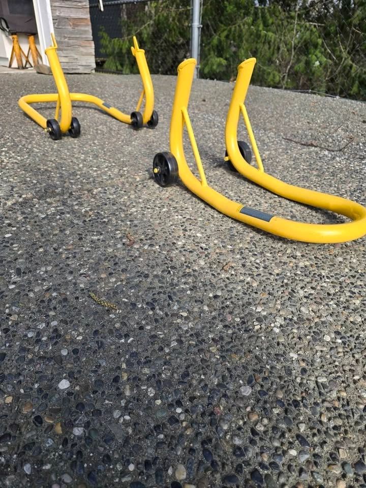Barely used, almost new condition. Selling because I no longer have the bike. These lifts are great for lubing the chain or doing other maintenance on your motorcycle. They allow you to lift both the front and rear tires, which is also convenient for storing your bike during the winter.