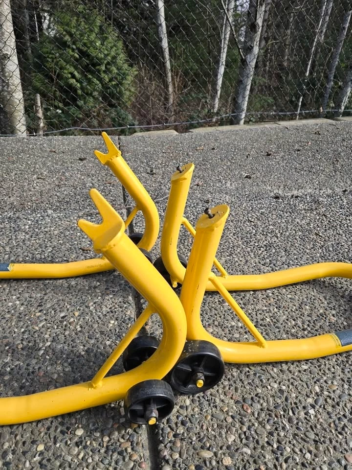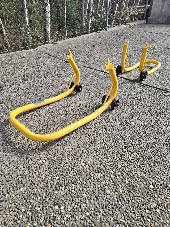 Barely used, almost new condition. Selling because I no longer have the bike. These lifts are great for lubing the chain or doing other maintenance on your motorcycle. They allow you to lift both the front and rear tires, which is also convenient for storing your bike during the winter.