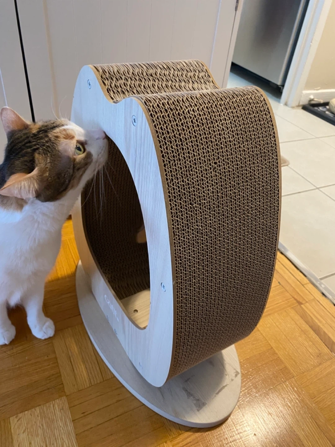 Cardboard cat scratcher and house. Too small for my cat (she’s a tall girl).