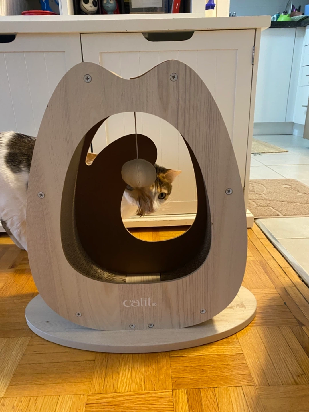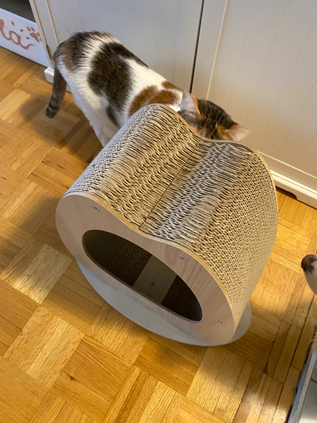Cardboard cat scratcher and house. Too small for my cat (she’s a tall girl).