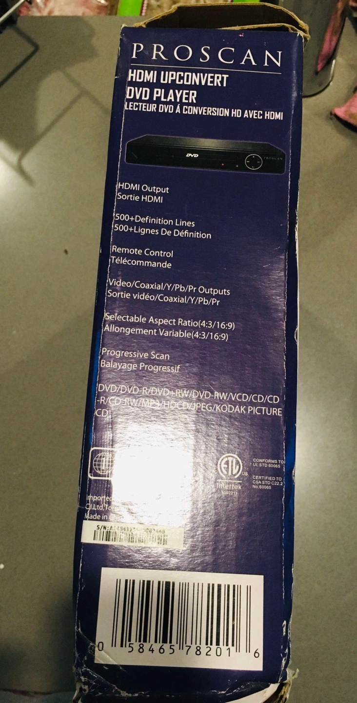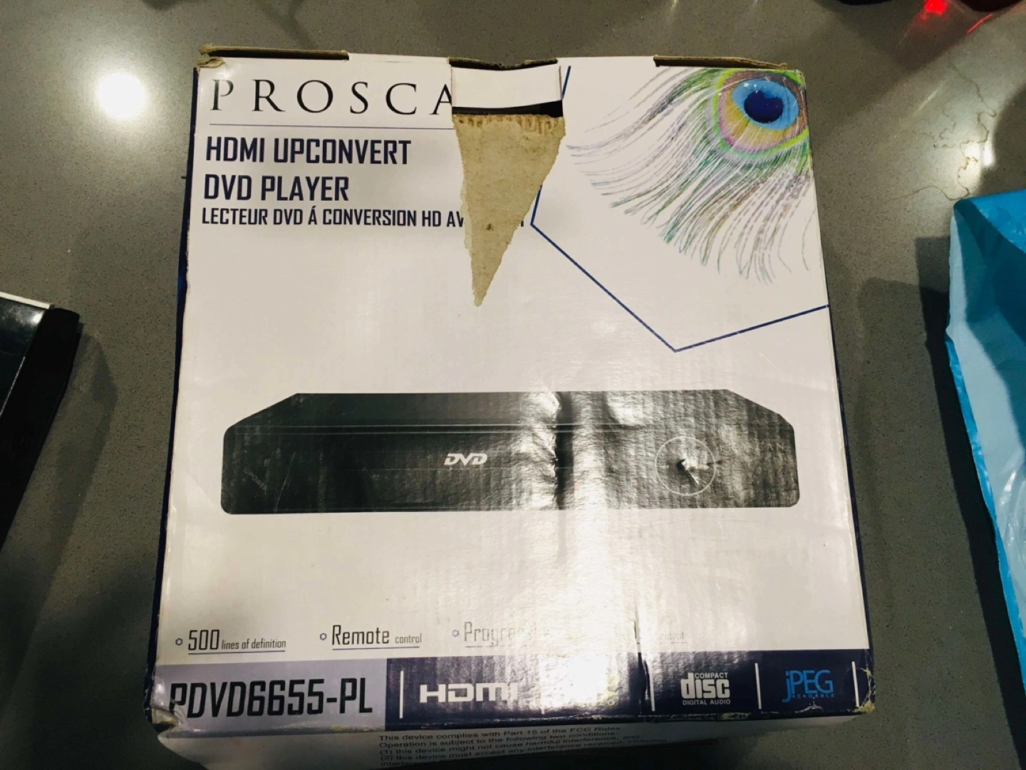 PROSCAN PDVD6655-PL HDMI Upconvert DVD Player .PROSCAN DVD player with remote. HDMI upconvert. Plays DVDs. Includes power cord and remote.