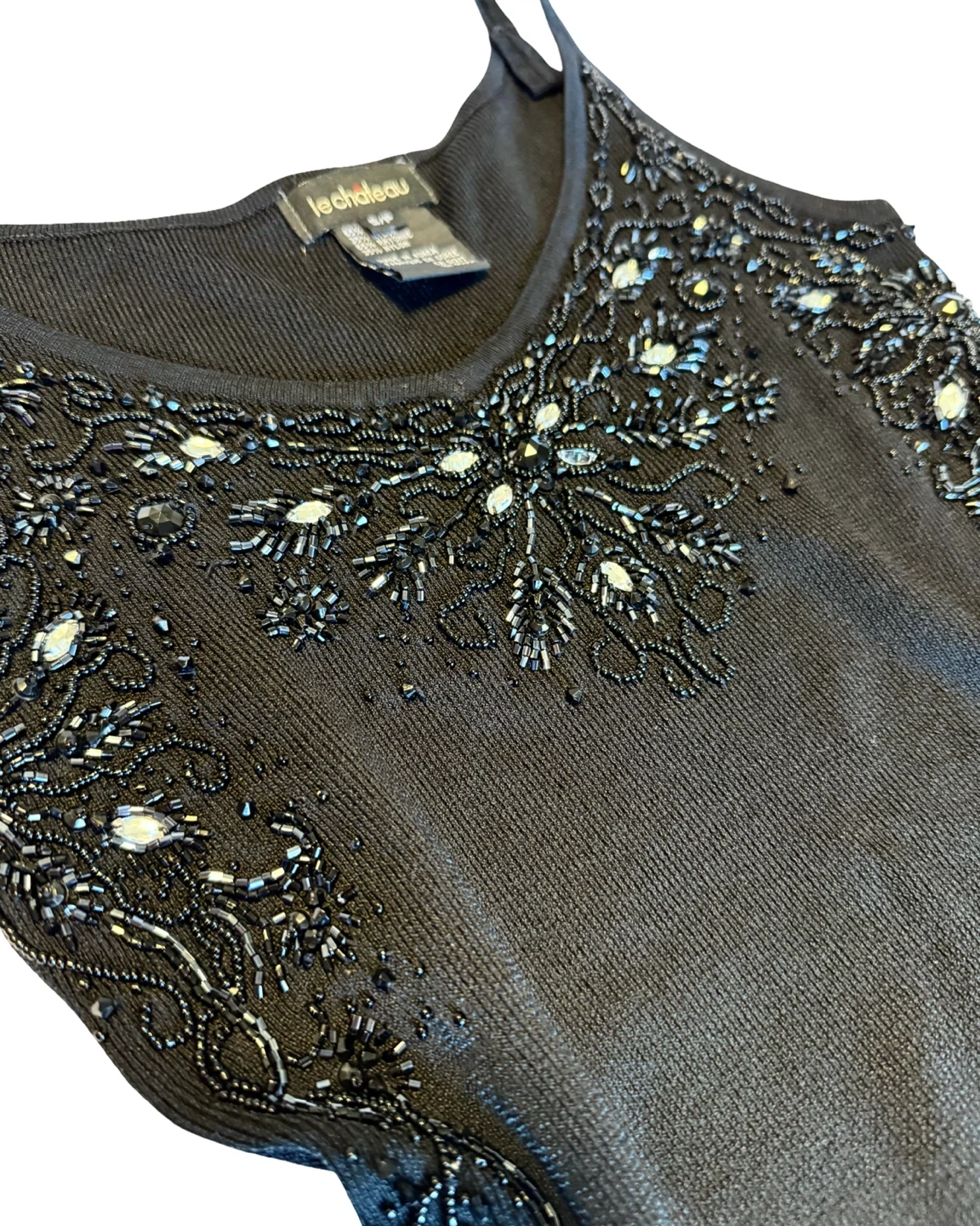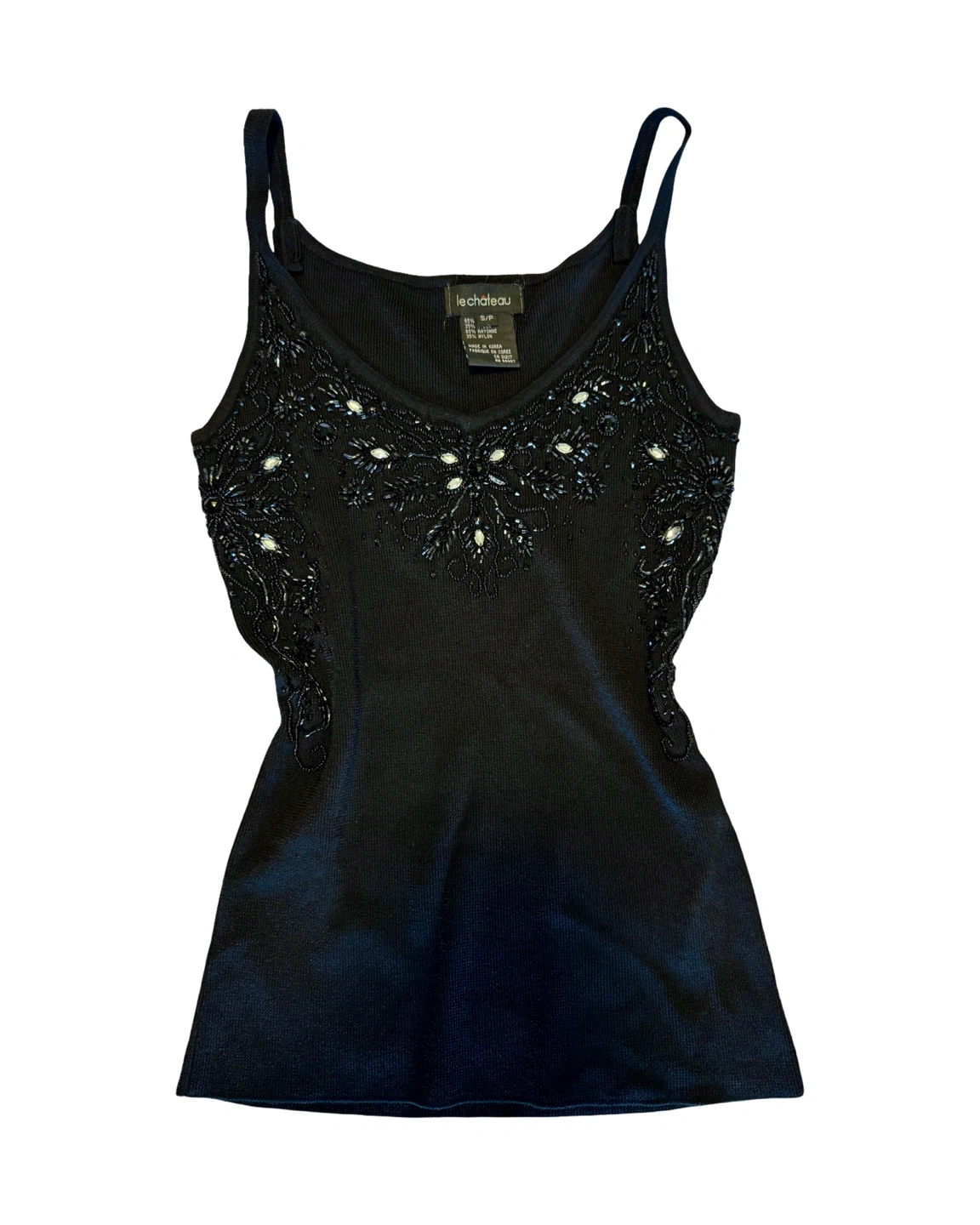 Y2K black tank top from Le Chateau, size S. It features intricate beading details.