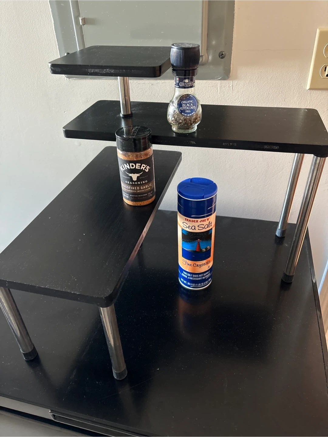 Buy & SellBlack 3-Tiered Countertop Shelf OrganizerBlack 3-Tiered Countertop Shelf Organizer$8This is a 3-tiered shelf organizer with a black finish. It features metal legs and shelves. Perfect for organizing spices or small items on a counter.ConditionGoodWHERE TO MEETCheck LocationView MapSELLERverifiedMillieEastchester600 reviews1 chats·1 favorites·9 viewsSEND CHAT TO SELLERHi Millie! I’m interested in your listing.Hi Millie! I’m interested in your listing.Get the Karrot app to chatSign In to chat