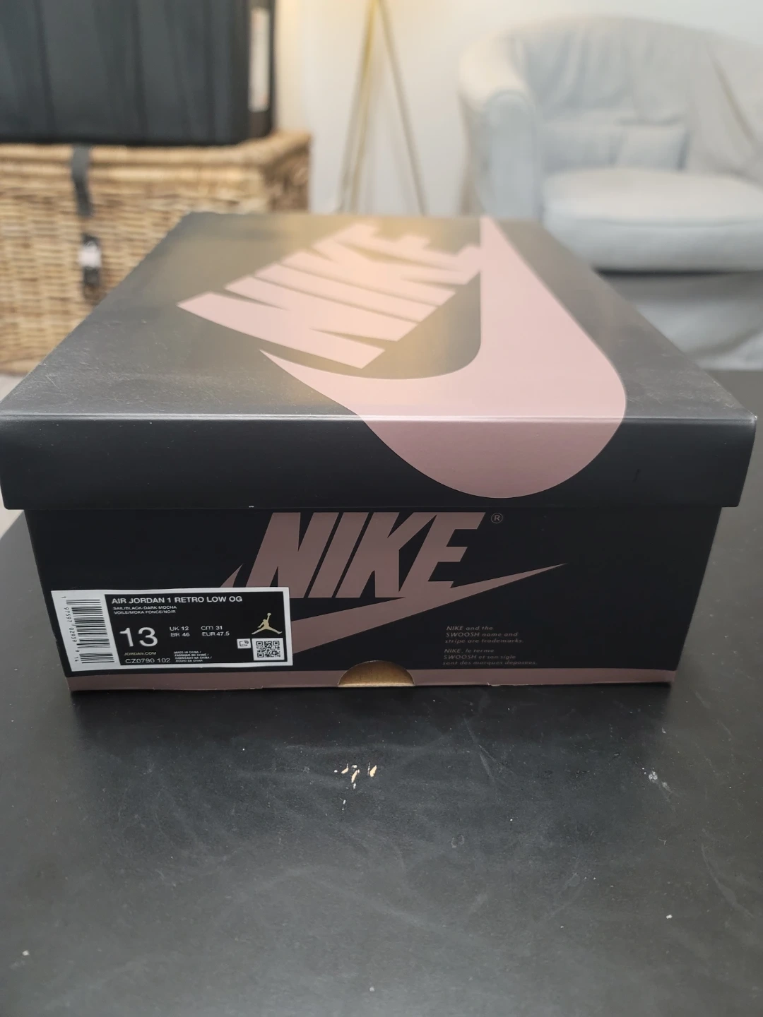 Selling a brand new pair of Air Jordan 1 Retro Low OG shoes in size 13. These are in the Black, White, and Dark Mocha colourway and come with the original box.