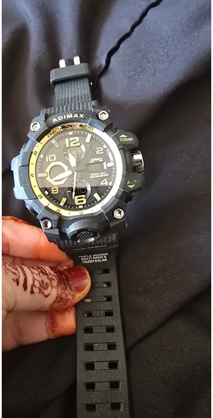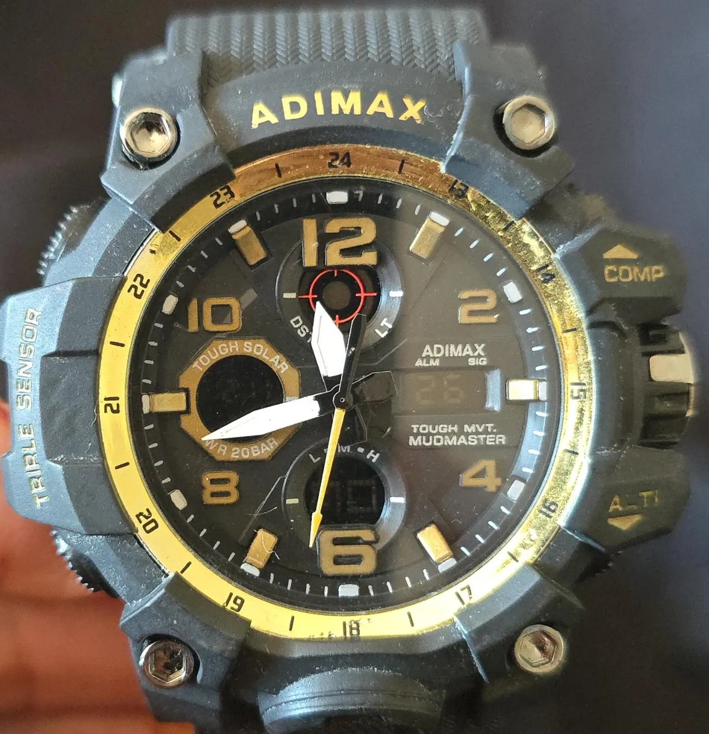 This ADIMAX watch features triple sensor technology and tough solar power. It's mud resist and water resistant up to 20 bar. Perfect for outdoor adventures and rugged use!
