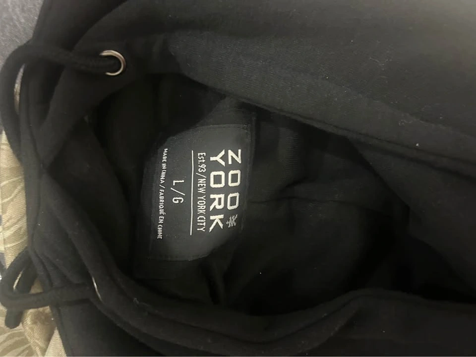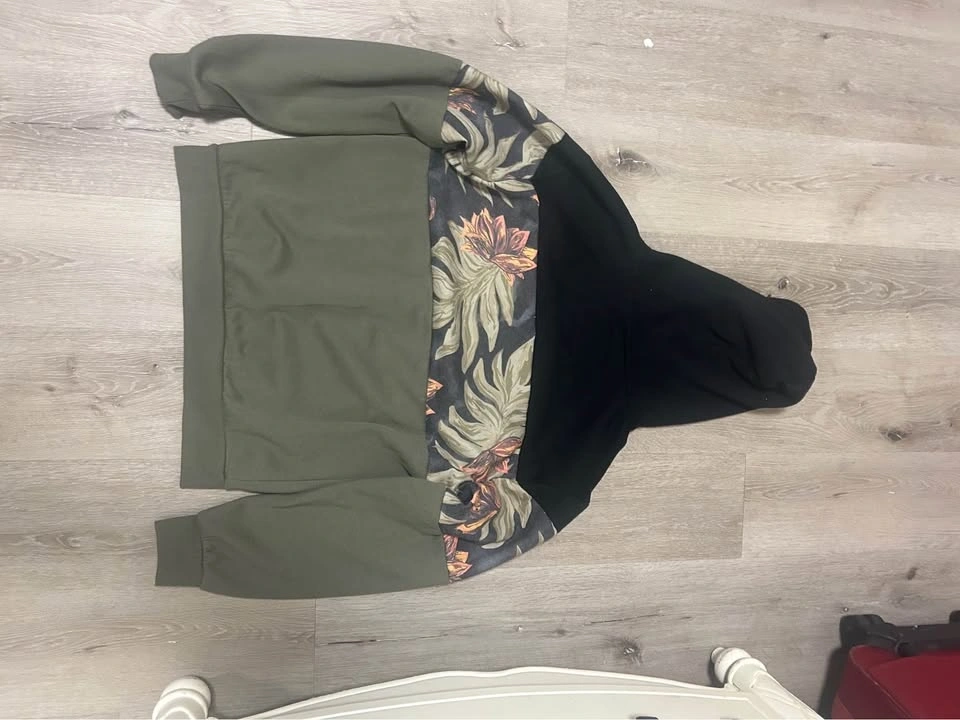Stylish Zoo York hoodie. Size L/G. Has a black hood and olive green body. Cool tropical floral pattern across the chest. Super comfy for everyday wear.