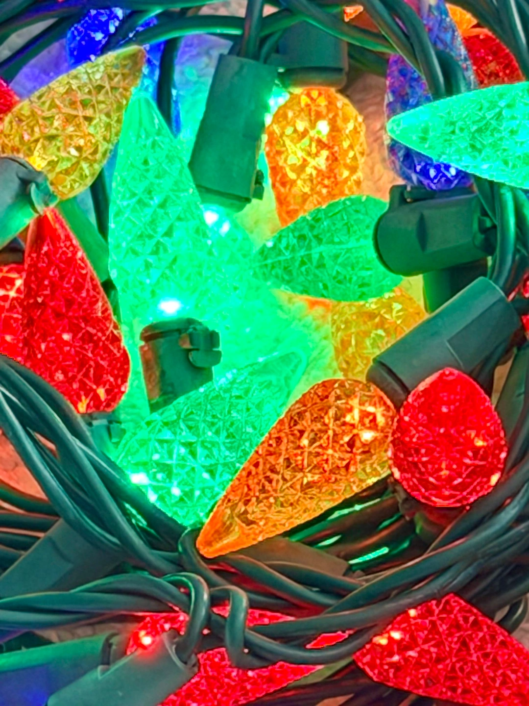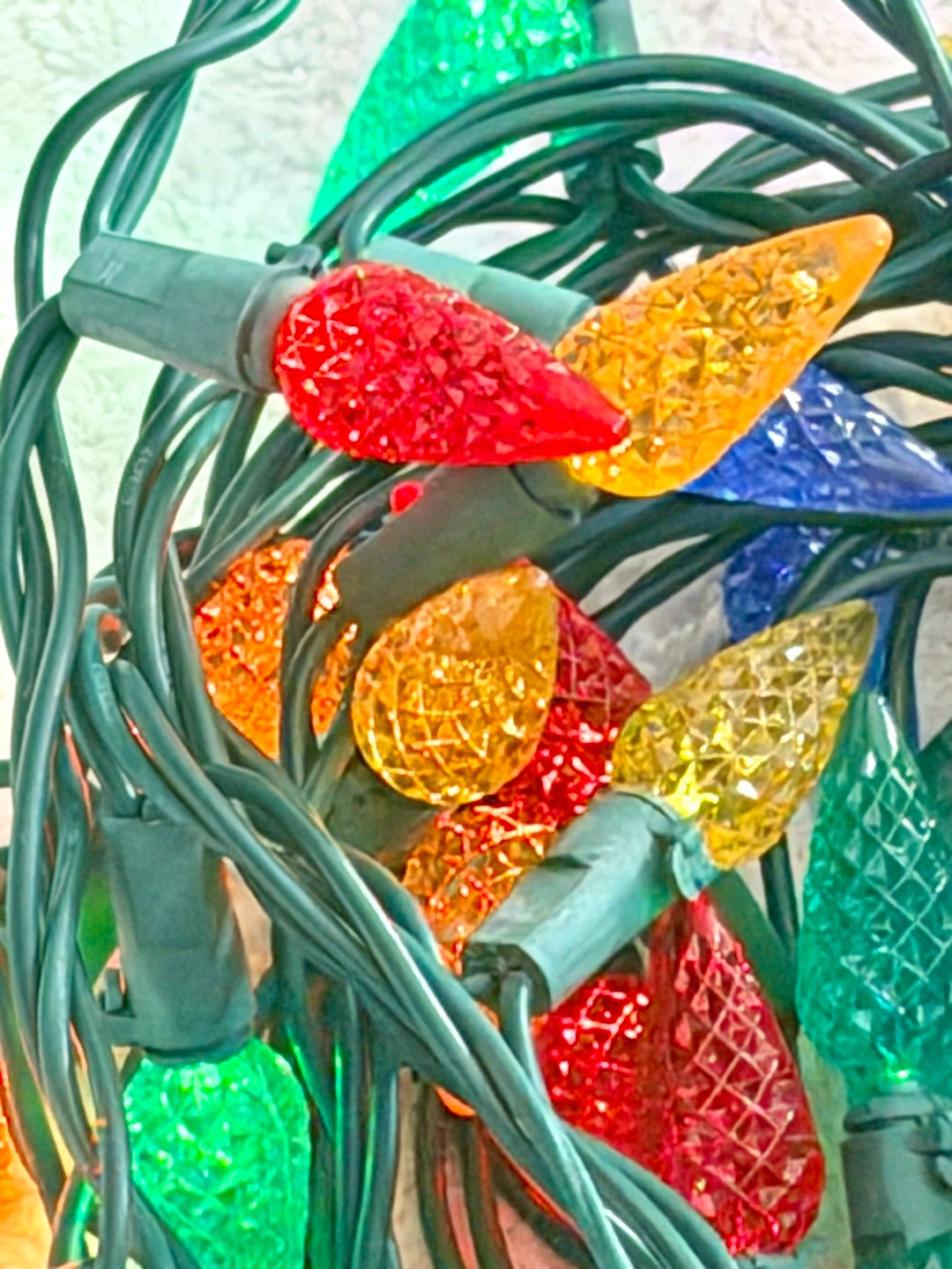 Brand new, never used, but no box. These lights feature beautiful, faceted, durable, and break-resistant covers. Light length is 15.9 ft with a total length of 18.25 ft. They have a replaceable fuse plug. The LED bulbs offer an extra-long life of 25,000 hours on average and consume 70% less power than traditional lights. They also stay cool when lit. Tested and fully functional! I'm happy to light them up for you to see when you pick them up. I have multiple sets available if you need more. Cash only. Buyer must pick up from the Morton Grove Area.