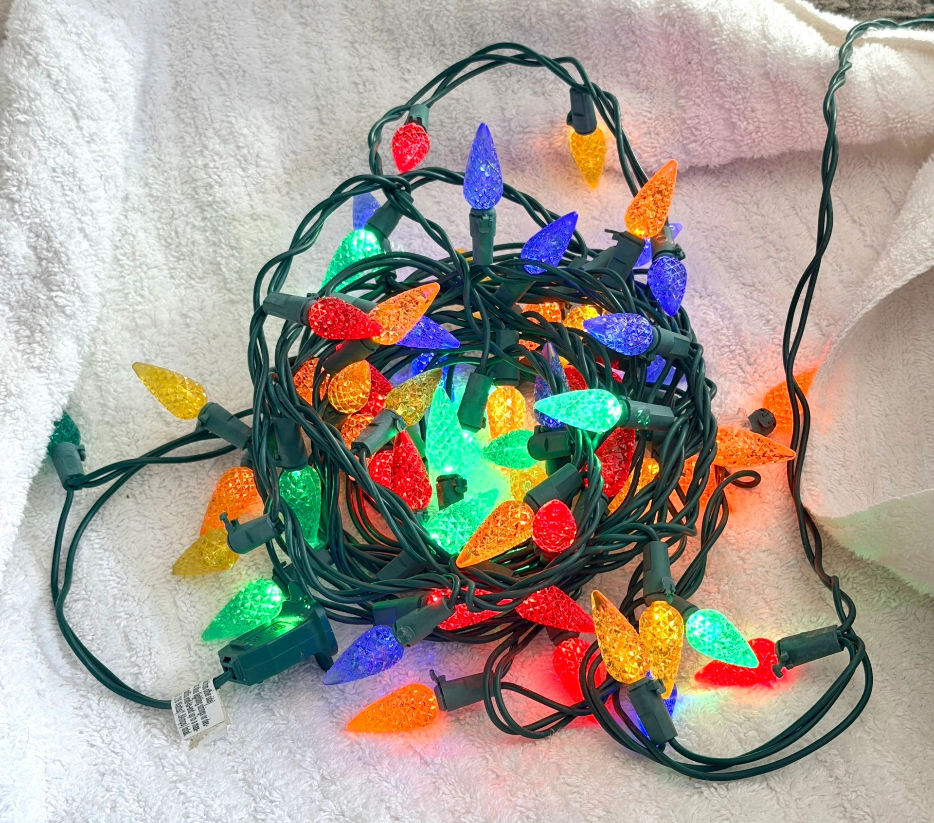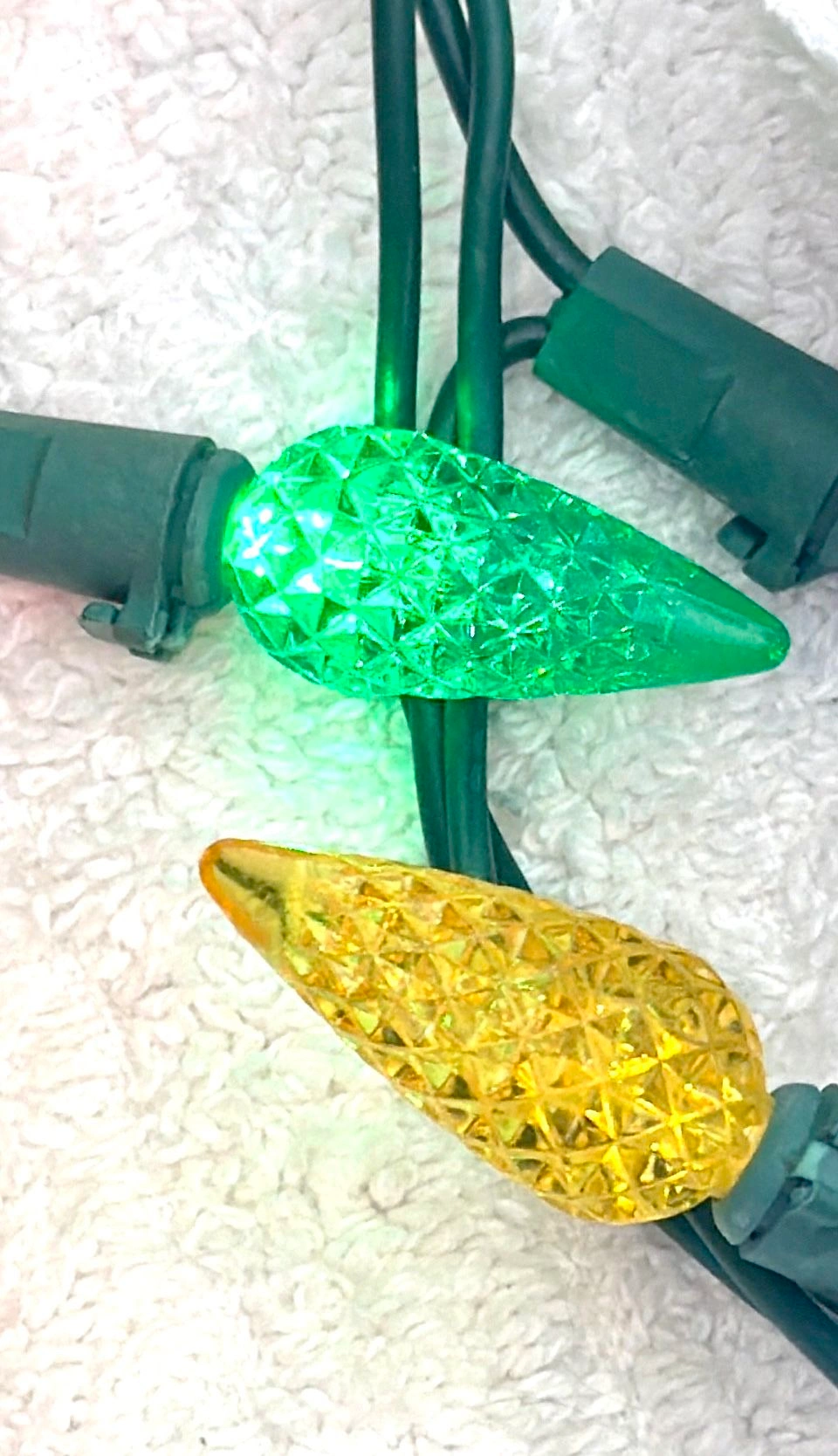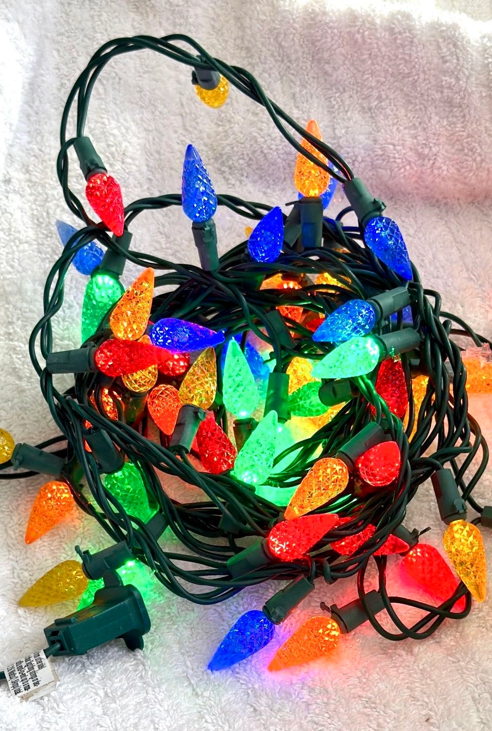 Brand new, never used, but no box. These lights feature beautiful, faceted, durable, and break-resistant covers. Light length is 15.9 ft with a total length of 18.25 ft. They have a replaceable fuse plug. The LED bulbs offer an extra-long life of 25,000 hours on average and consume 70% less power than traditional lights. They also stay cool when lit. Tested and fully functional! I'm happy to light them up for you to see when you pick them up. I have multiple sets available if you need more. Cash only. Buyer must pick up from the Morton Grove Area.