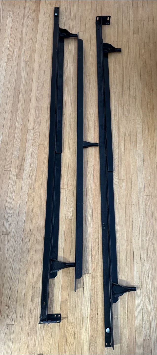 This is a set of metal bed frame rails with a center support. It is Queen size , brand new metal with all the bolts and feet
