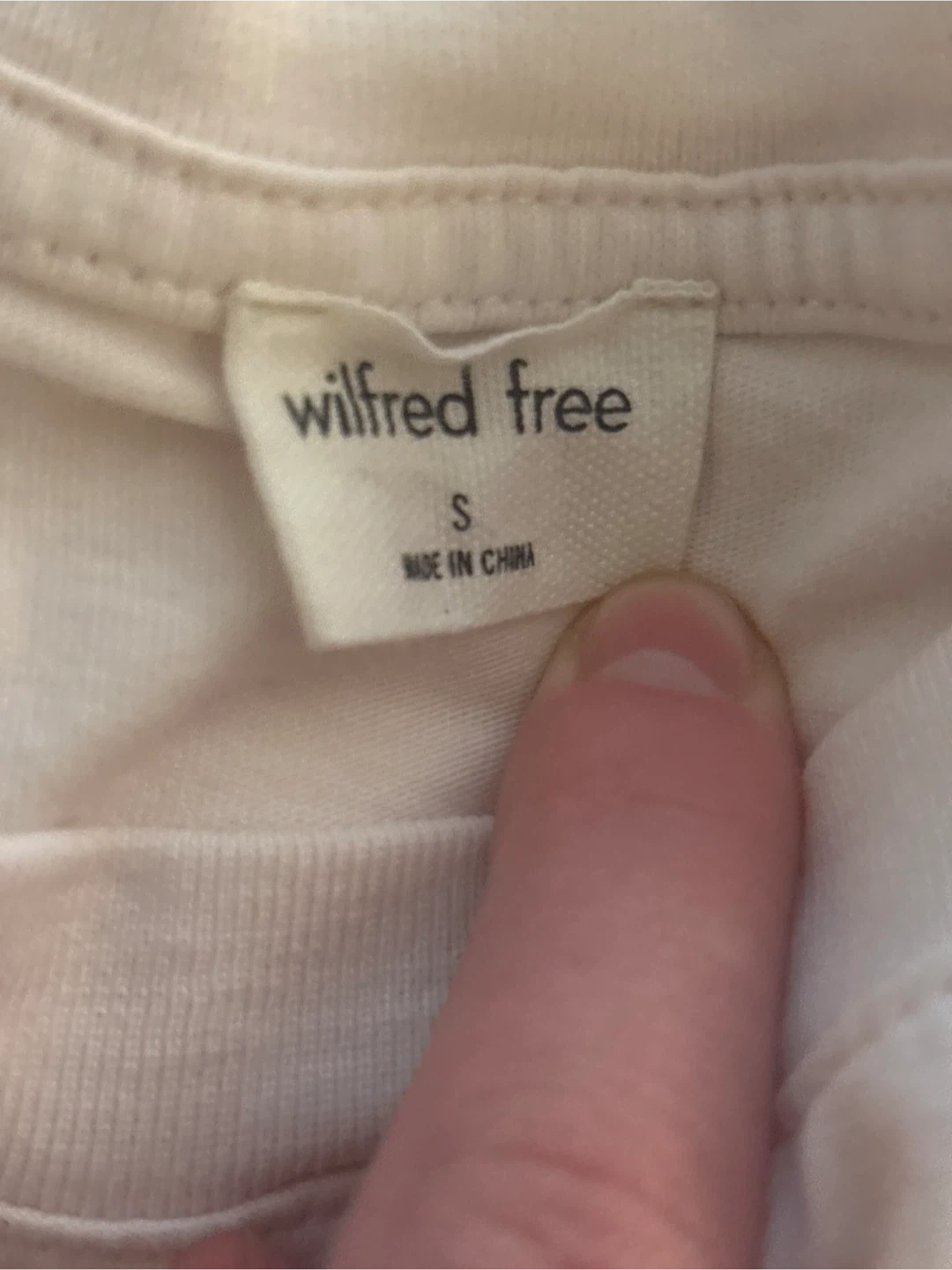 This is a Wilfred Free t-shirt. It's a size small. The material is soft.