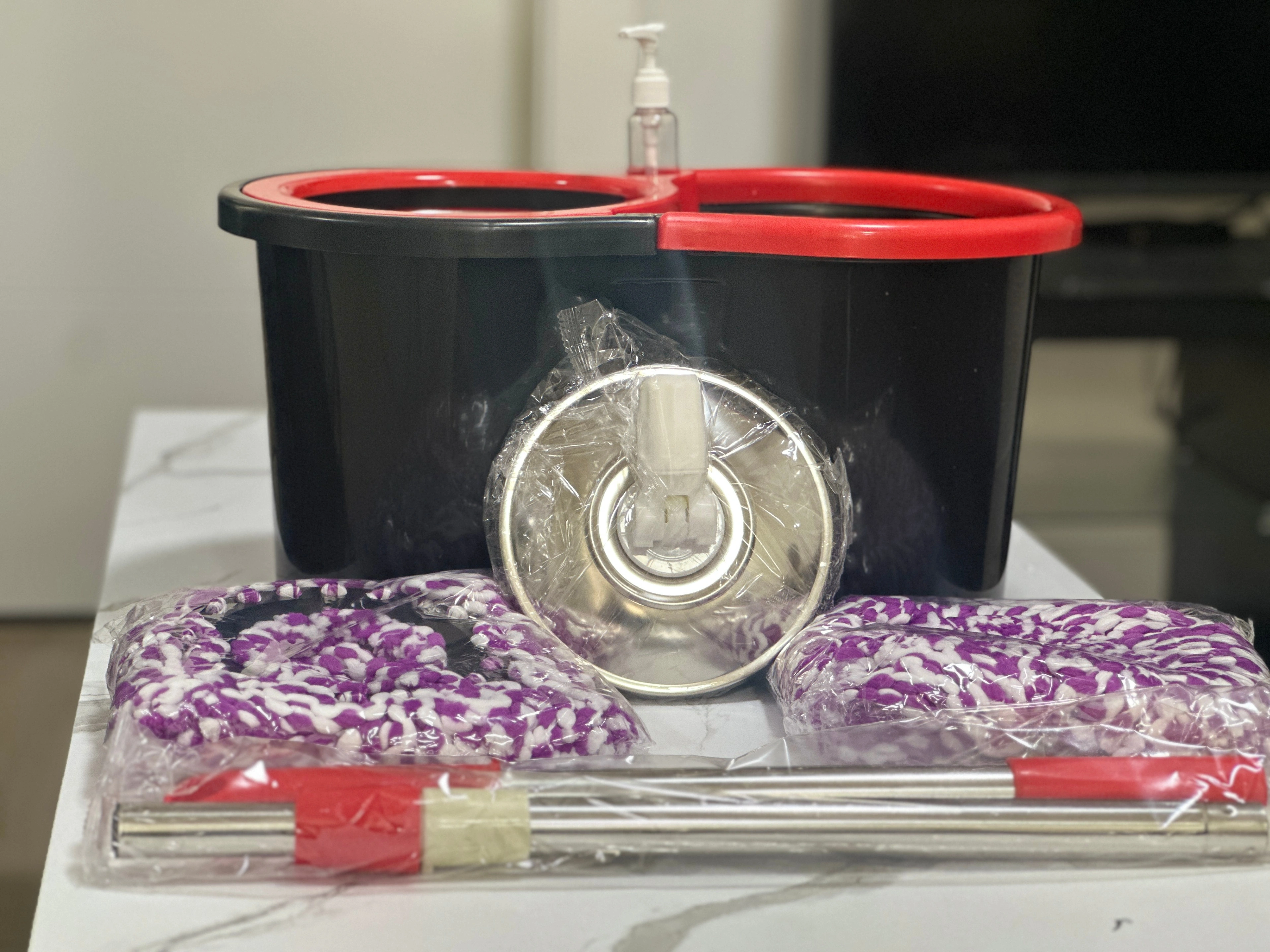 Spin Mop & Bucket with 2 Microfiber Heads, Stainless Steel, Adjustable Handle, Large Easy-Clean Bucket, Durable, Perfect for Home, Kitchen, Floor & Office.