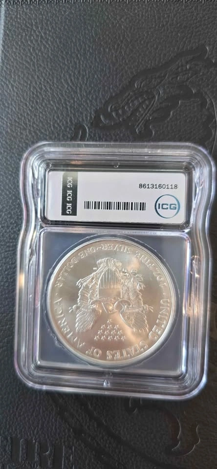 Museum-quality 1998 American Silver Eagle, professionally certified MS70 by ICG. This coin is a true collector’s prize, featuring a prestigious Austin Hutto Hand-Signed Label.