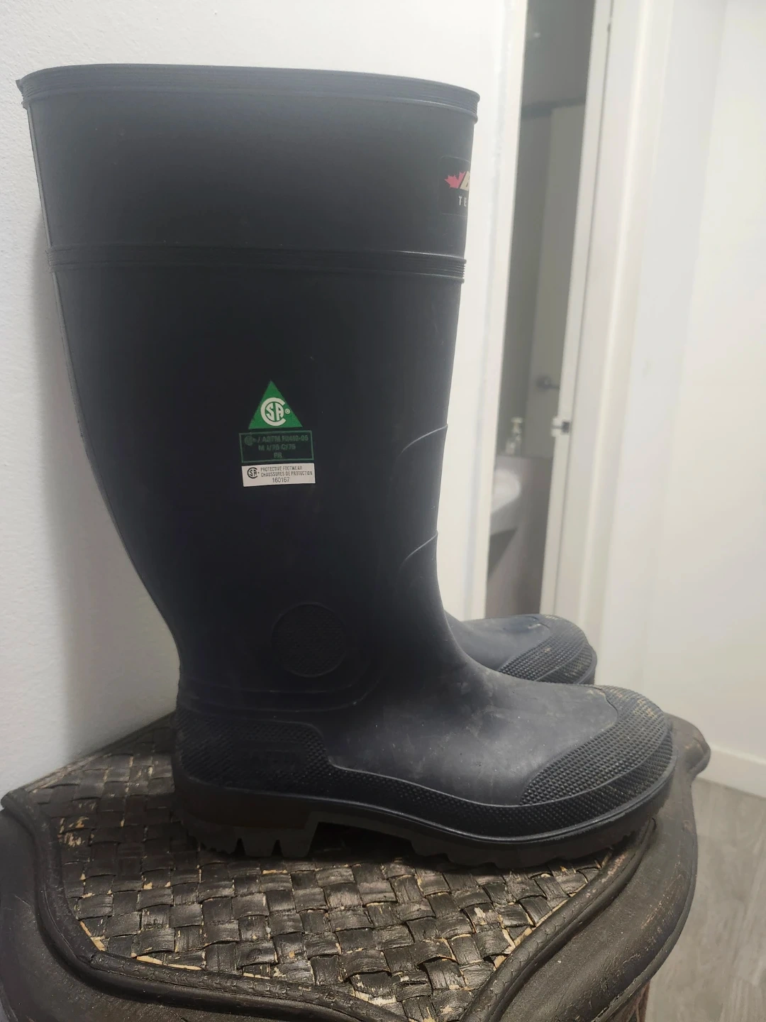 Selling a pair of Baffin technology steel toed rubber work boots in size 11. These boots are great for tough jobs and provide excellent protection and durability. They're in good condition and ready to keep your feet safe on the job site