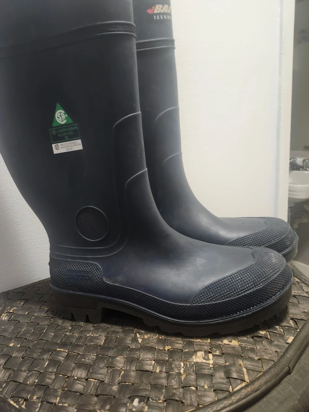 Selling a pair of Baffin technology steel toed rubber work boots in size 11. These boots are great for tough jobs and provide excellent protection and durability. They're in good condition and ready to keep your feet safe on the job site