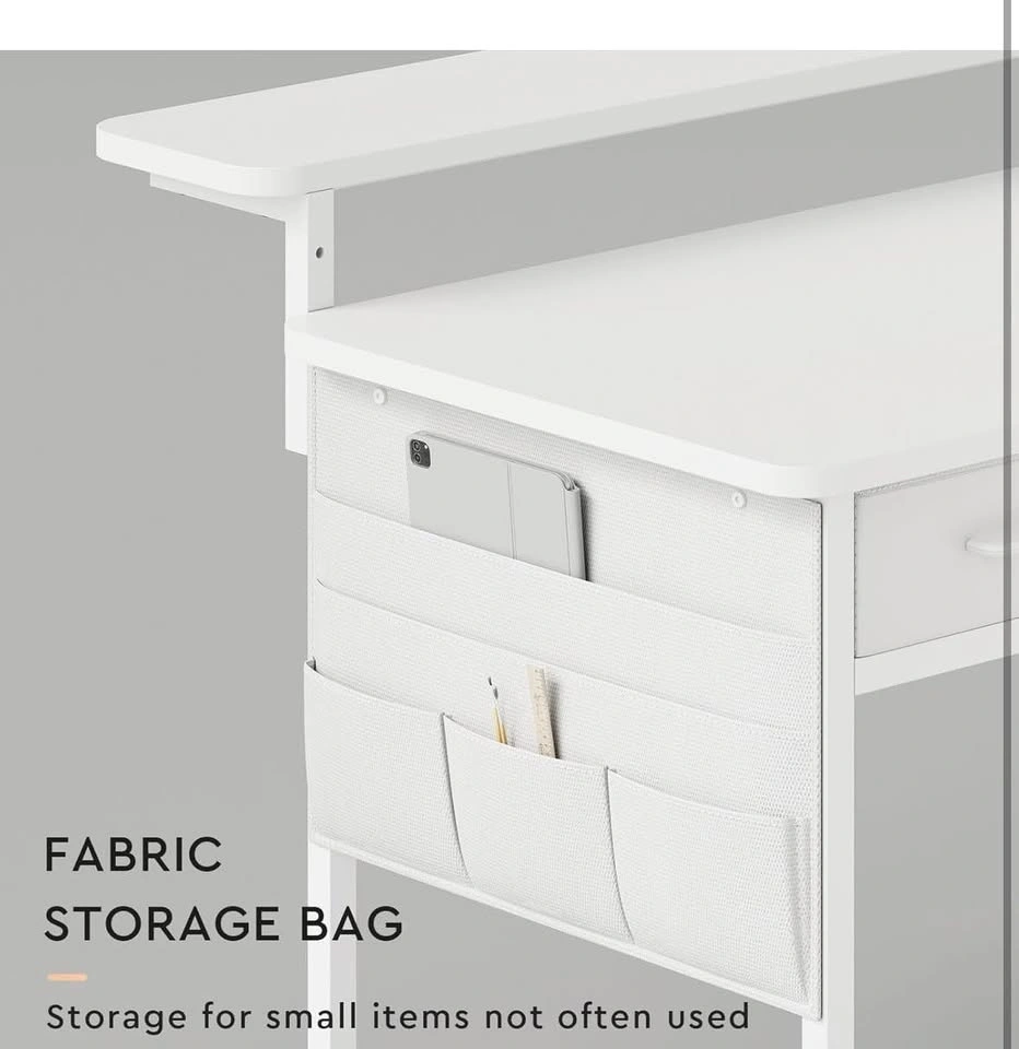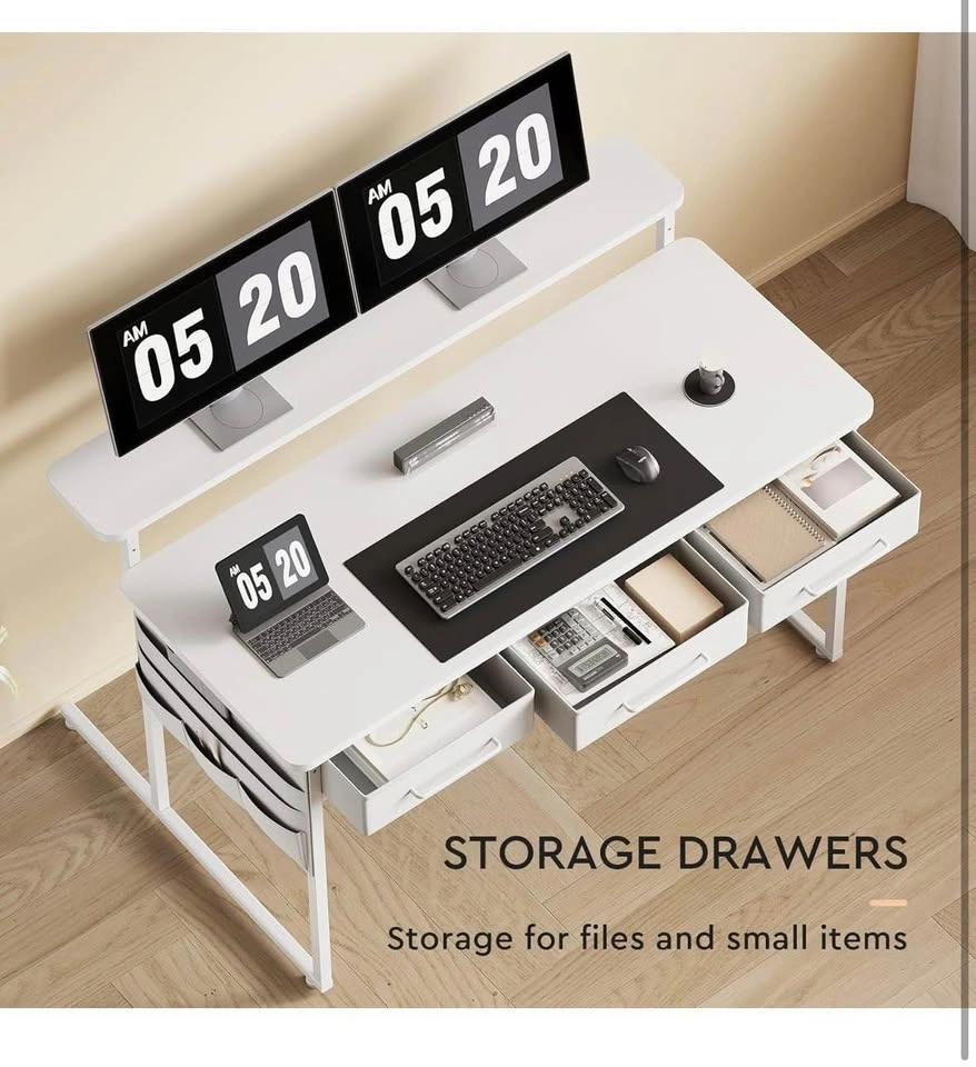 White Desk w/ Monitor Stand & Storage Drawers