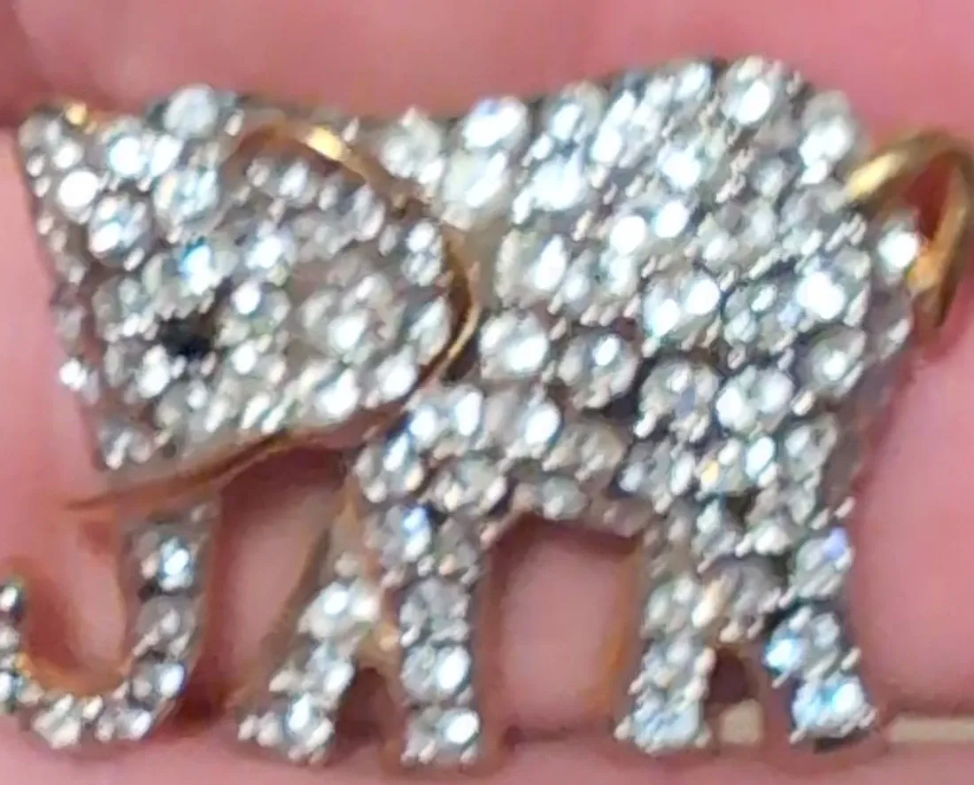 Buy & SellRhinestone Elephant BroochRhinestone Elephant Brooch$20A sparkly elephant brooch covered in rhinestones. It's a gold-toned pin with a secure clasp on the back. Great for adding a bit of fun to any outfit!ConditionLike newWHERE TO MEETCheck LocationView MapSELLERverifiedsammyThorold600 reviews0 chats·1 favorites·6 viewsSEND CHAT TO SELLERHi sammy! I’m interested in your listing.Hi sammy! I’m interested in your listing.Get the Karrot app to chatSign In to chat