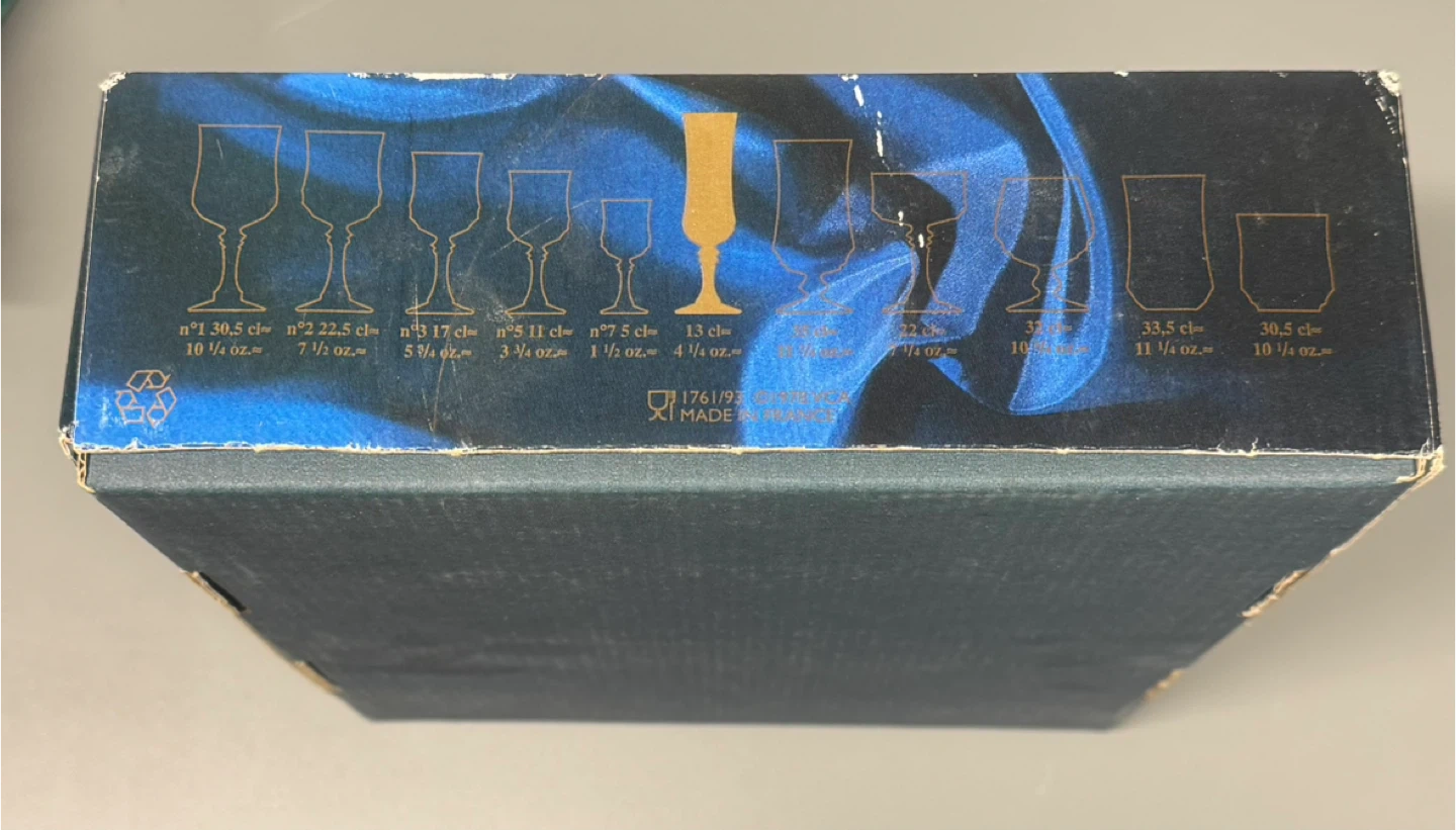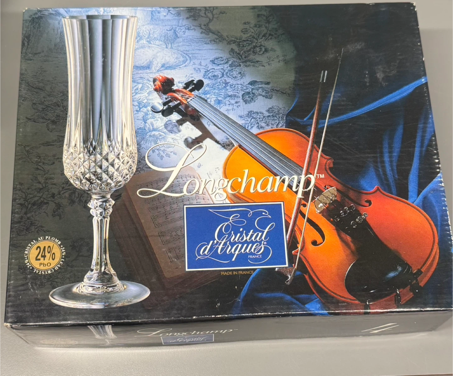 Selling a vintage set of 4 Cristal d'Arques Longchamp champagne flutes. They are in excellent condition and come in their original box! These elegant flutes are perfect for any celebration or special occasion. The box indicates they are made of genuine lead crystal.