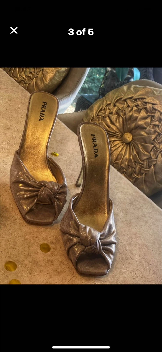 Buy & Sell✨Prada Bronze Knot Mules, Size 38✨Prada Bronze Knot Mules, Size 38$563✨Selling a pair of Prada mules in a beautiful bronze colour. They feature a stylish knot detail. Size 38. Retail $2500.ConditionNewSize38BrandPradaWHERE TO MEETDundarave Beach West VancouverView MapSELLERverifiedEvelynDundarave Beach721 review0 chats·0 favorites·30 viewsSEND CHAT TO SELLERHi Evelyn! I’m interested in your listing.Hi Evelyn! I’m interested in your listing.Get the Karrot app to chatSign In to chat