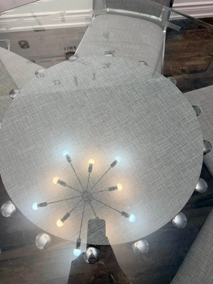 Modern Glass Dining Table with 6 Grey Chairs