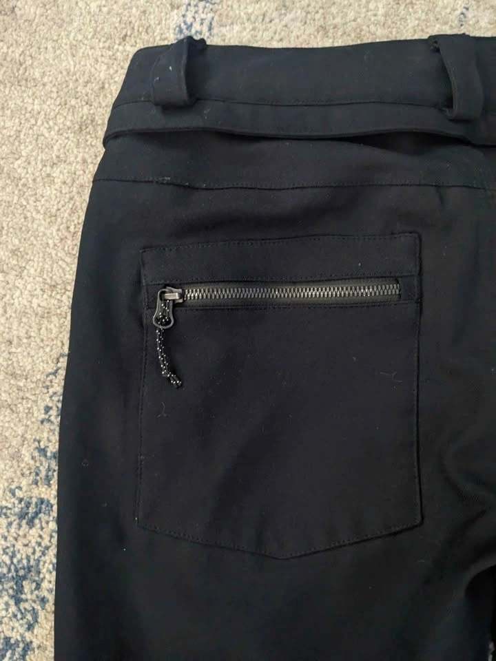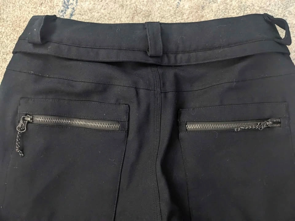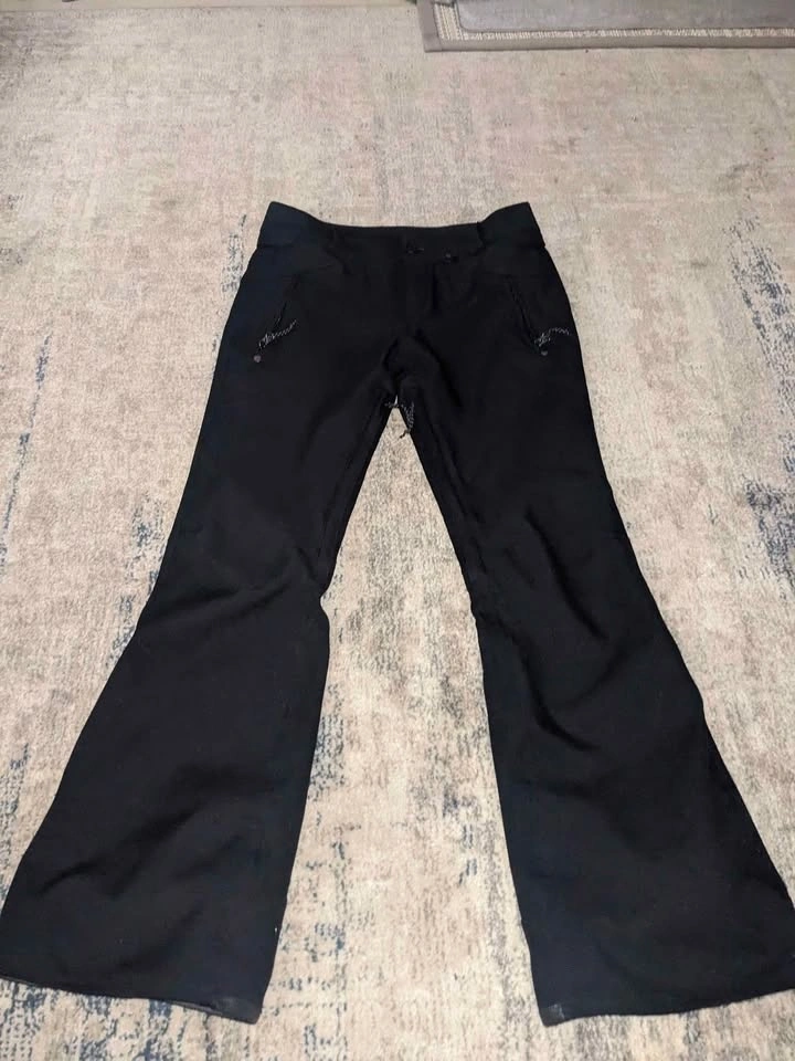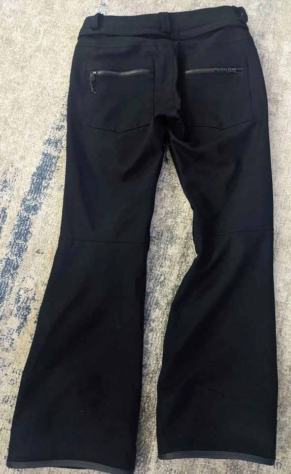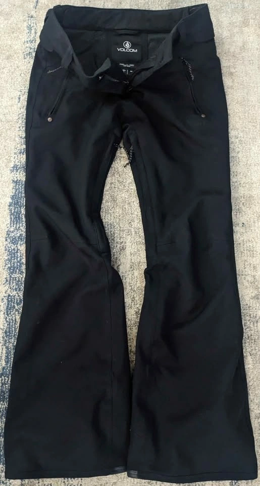 Black Volcom snow pants with zippered pockets front and back. Tapered waterproof gater ankles, size S. These are the most flattering snow pants you will ever own, incredibly comfortable and very form-fitting like your favorite pair of jeans. You will not be disappointed. Great condition!