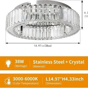【Suitable for Various Places】The dazzling crystal ceiling lamp looks bright and tasteful, ideal for living rooms, bedrooms, dining rooms, hallways, entryway, porches, closets, kitchens, stairwells and other spaces.