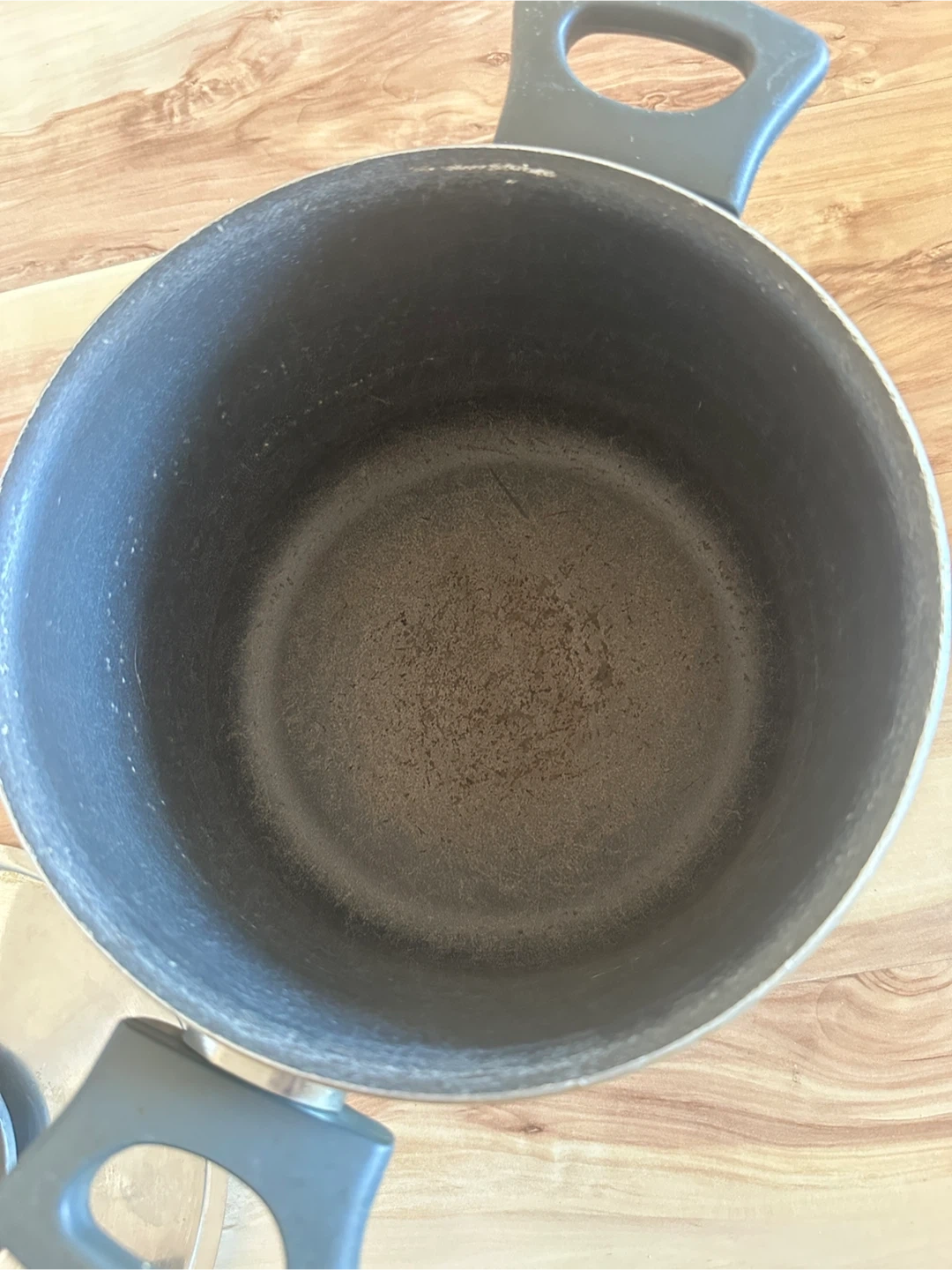 This is a saucepan with a stainless steel lid. It's made of metal with black handles. The lid has small holes for draining.