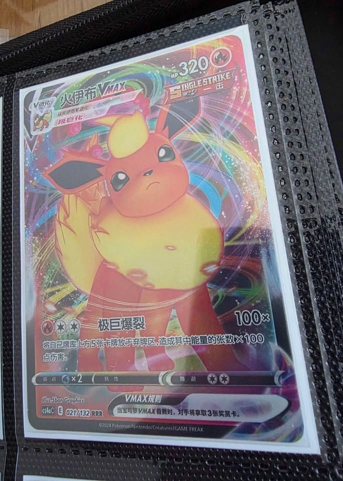 Eevee VMAX, Jolteon VMAX, Vaporeon VMAX, Flareon VMAX, Espeon VMAX, Umbreon VMAX, Leafeon VMAX, Glaceon VMAX, Sylveon VMAX. Immediately sleeved. Will trade for Pikachu or sealed product.