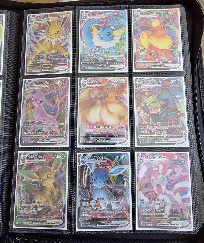 Eevee VMAX, Jolteon VMAX, Vaporeon VMAX, Flareon VMAX, Espeon VMAX, Umbreon VMAX, Leafeon VMAX, Glaceon VMAX, Sylveon VMAX. Immediately sleeved. Will trade for Pikachu or sealed product.