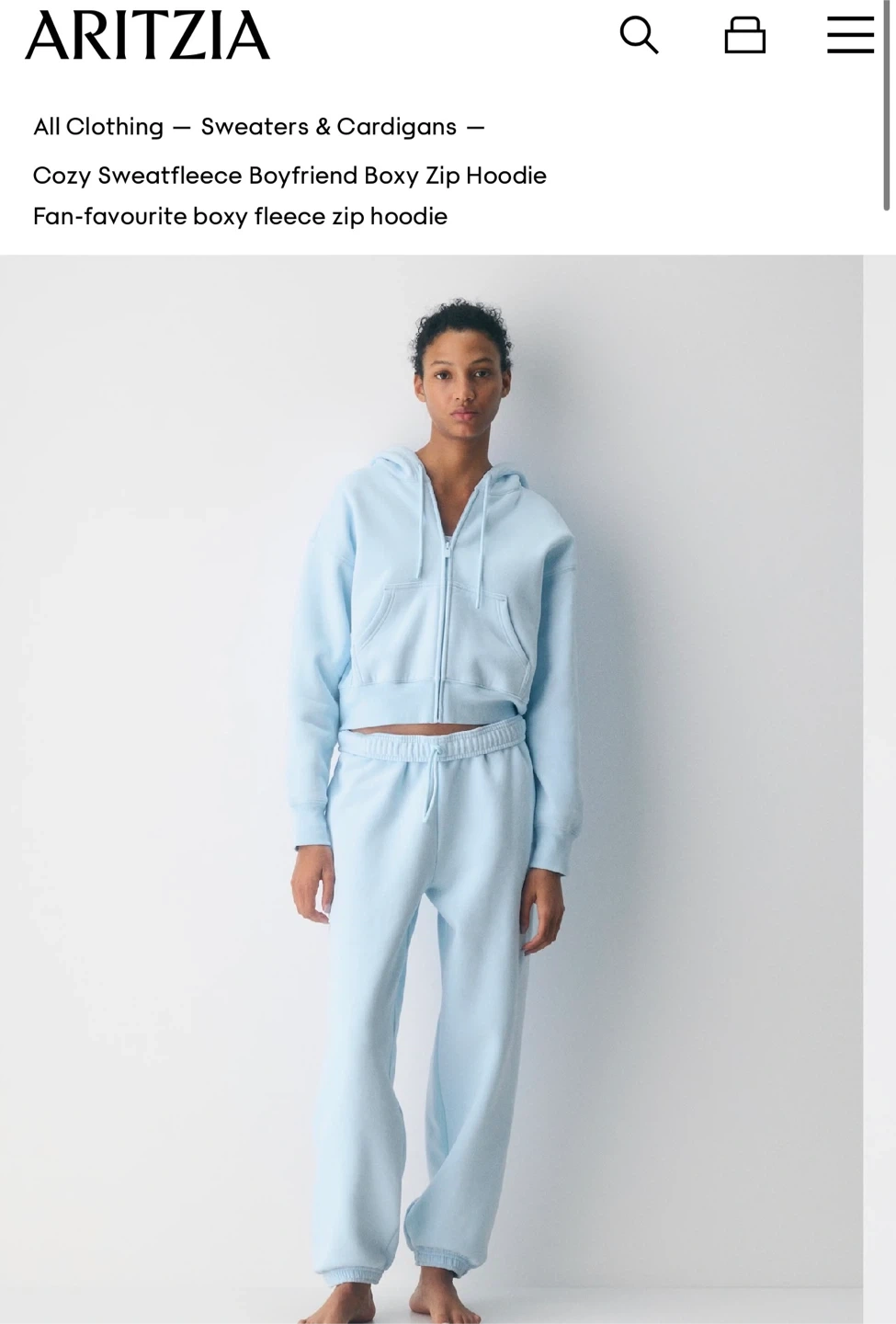 Aritzia Cozy Sweatfleece Boyfriend Boxy Zip Hoodie