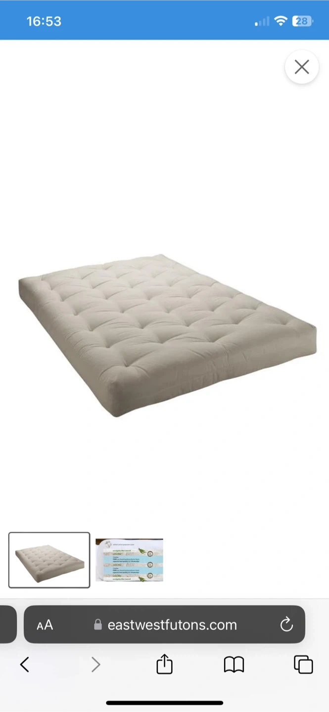 - Natural dark wood futon frame, convertible to sit, lounge and sleep positions.