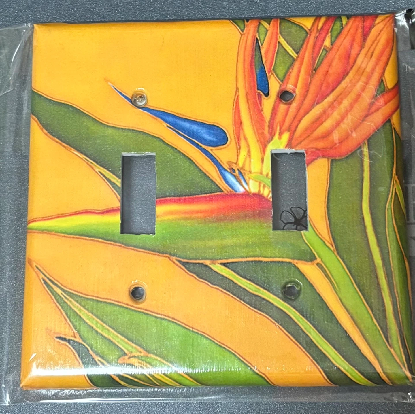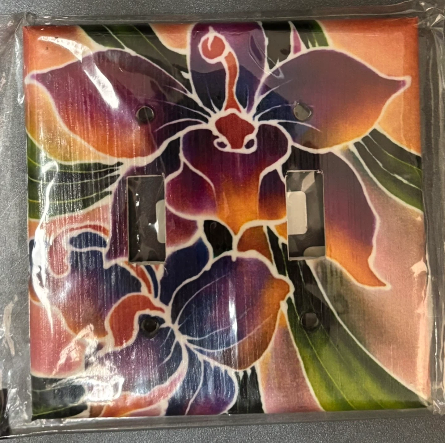 Add a touch of tropical flair to any room with these beautiful, double light switch plate covers. Features vibrant floral designs inspired by Hawaii. Easy to install and clean. Bought in Hawaii.